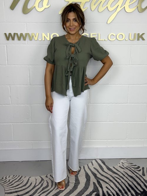 Khaki Cheesecloth Tie Up Top 825