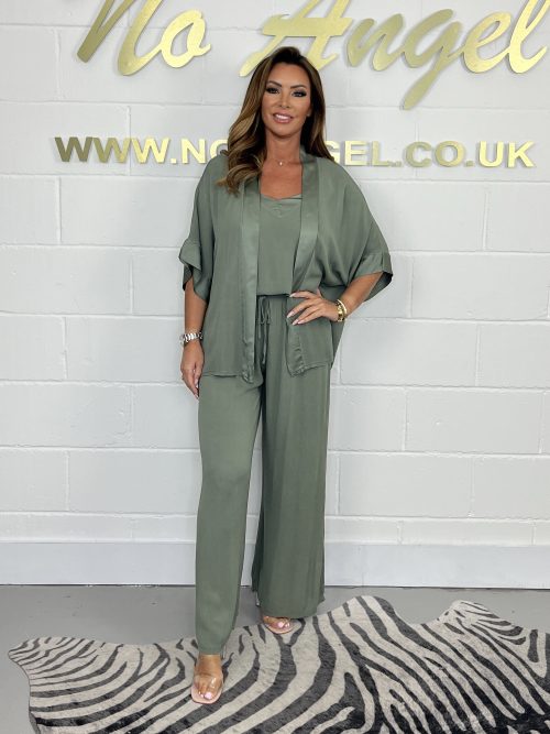 Khaki 3 Piece Vest , Top & Trousers Co-Ord 366