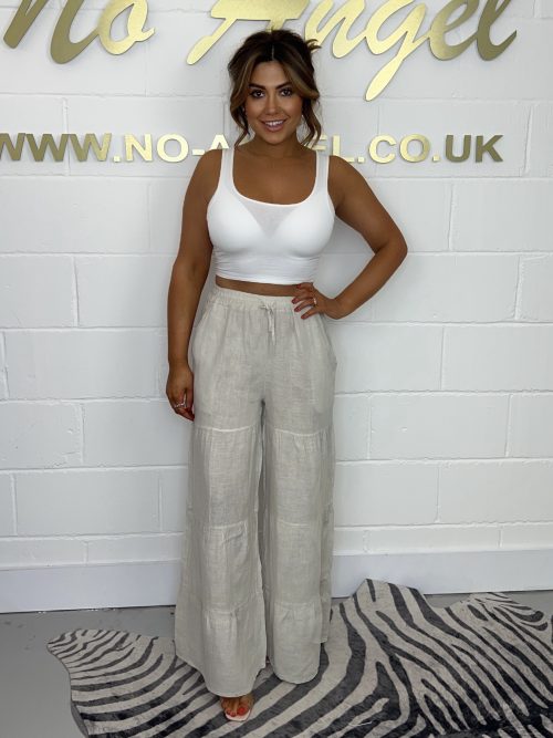 Beige Linen Trouser With Tie Waist 571