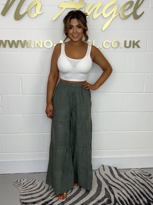 Khaki Linen Trouser With Tie Waist 572