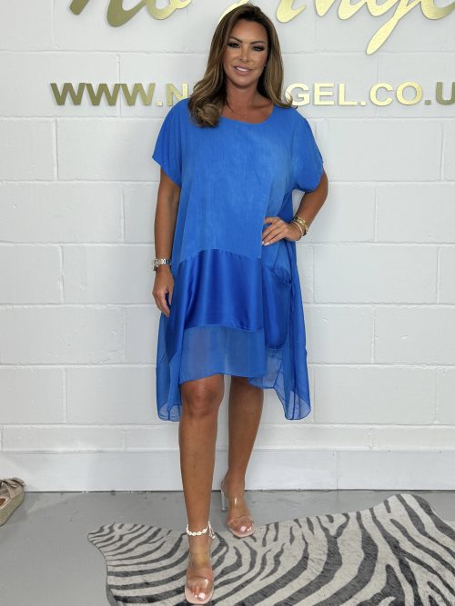 Blue Silk Trim Tunic Dress 1140