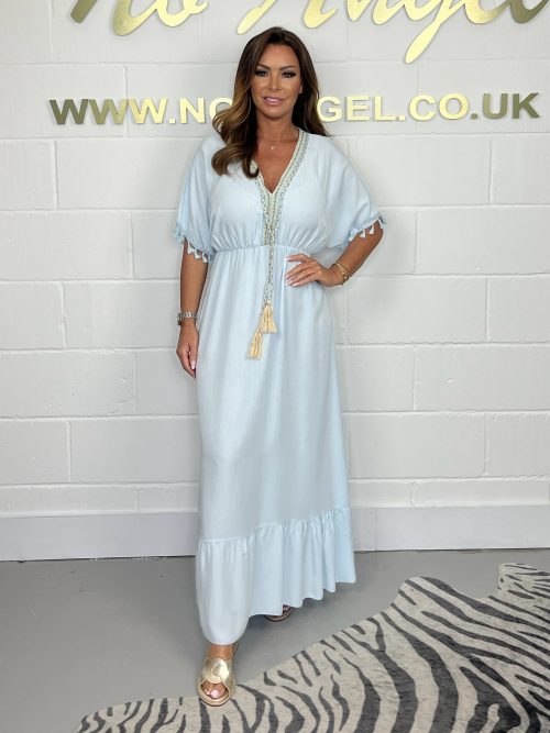 Baby Blue V Neck Tassel Maxi Dress 9216