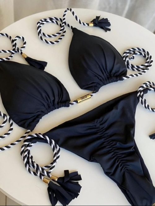 Baby Blue / Pink Rope Triangle Thong Bikini