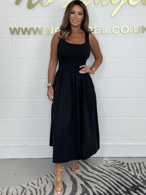 Beige & Black Illusion Spaghetti Strap Maxi Dress 946
