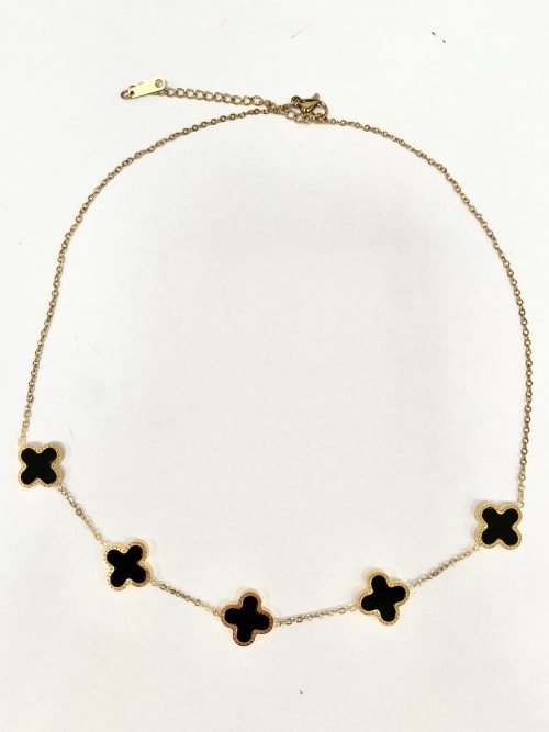 Gold 5 Clover Necklace Black 5696