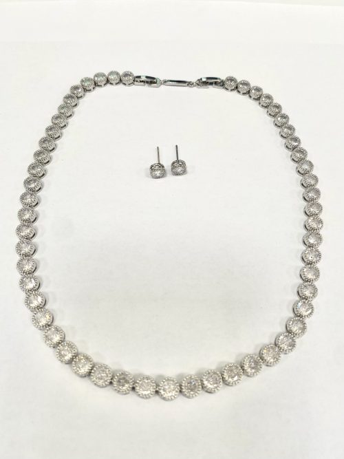 Diamonté Circle Gem Necklace/Earrings Set 5699