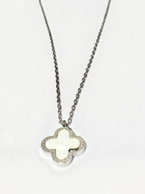 Silver Pearl White Clover Necklace 6267