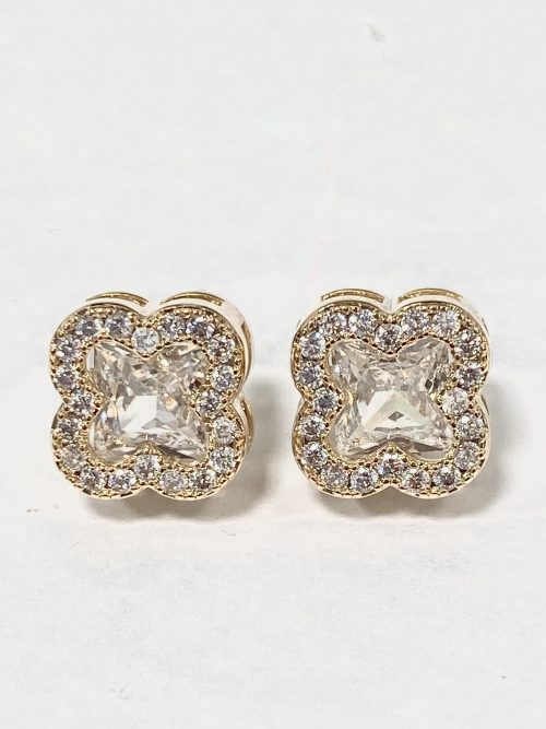 Gold/Diamonte Trim Clover Earrings 6338