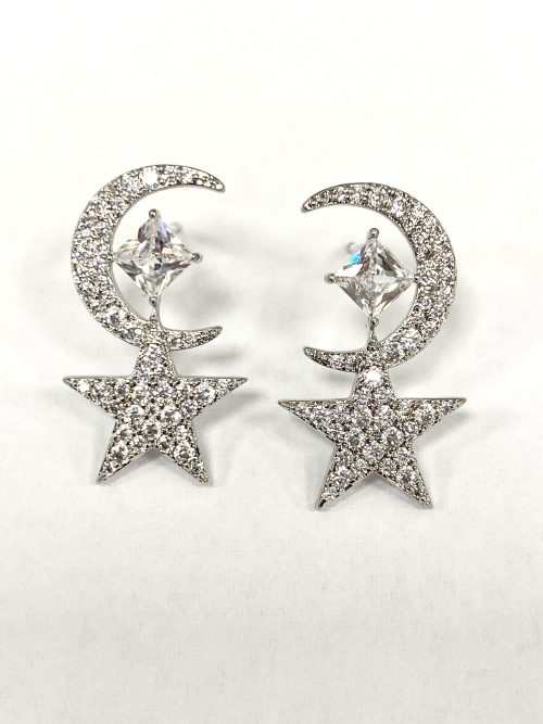 Silver/Diamonté Star & Moon Earrings 6342