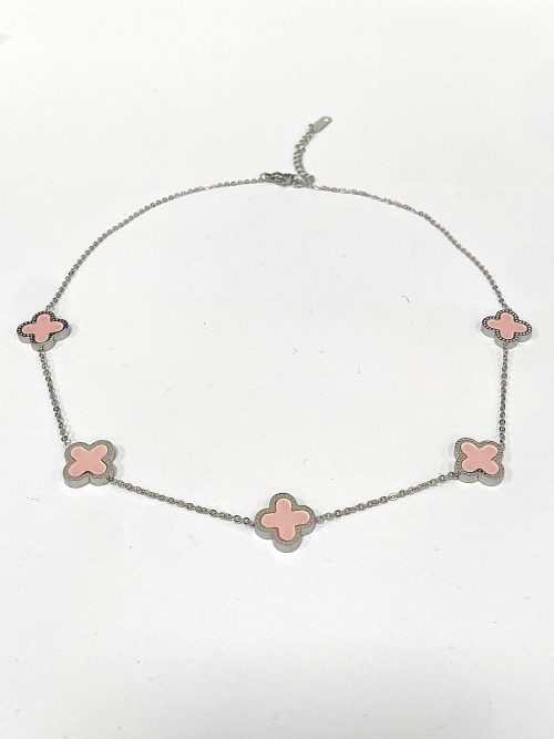 Pink /Silver 5 Clover Necklace 6397