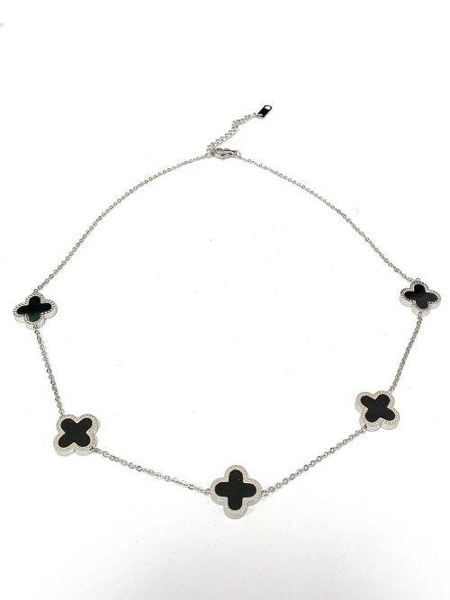 Black/Silver 5 Clover Necklace 6396