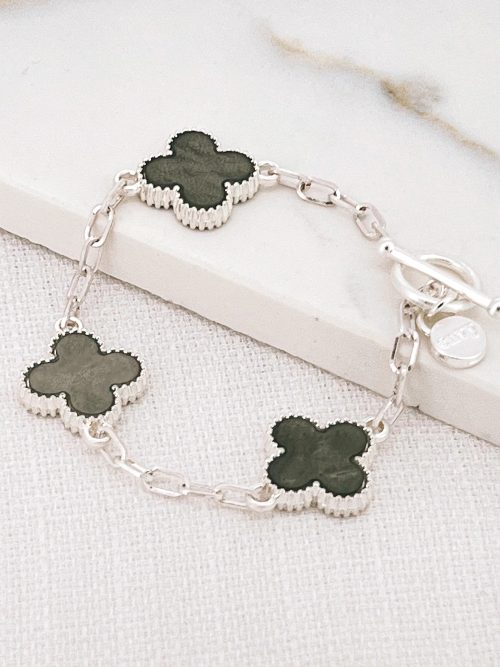 Grey & Silver Large Clover T-Bar Bracelet 6717