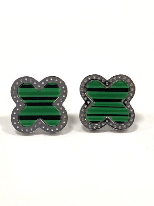 Silver/Green Trim Clover Earrings 6445