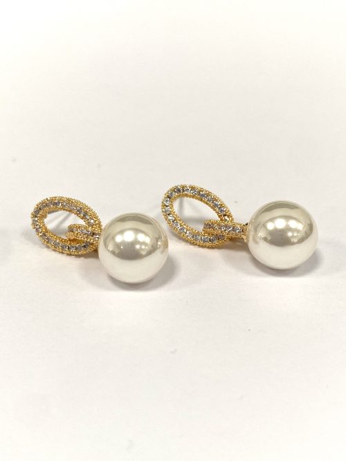 Gold/Diamonté Pearl Drop Earrings 6443
