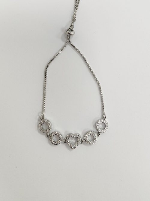 Silver Heart/Circle Diamante Bracelet 6676