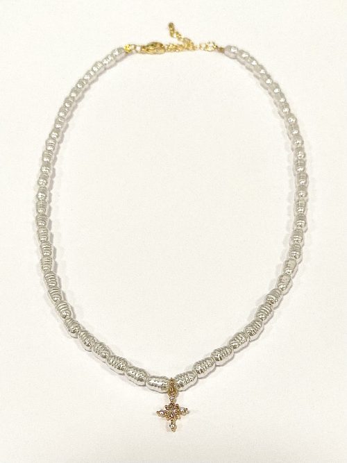 Pearl Gold/Diamonté Cross Necklace 6704