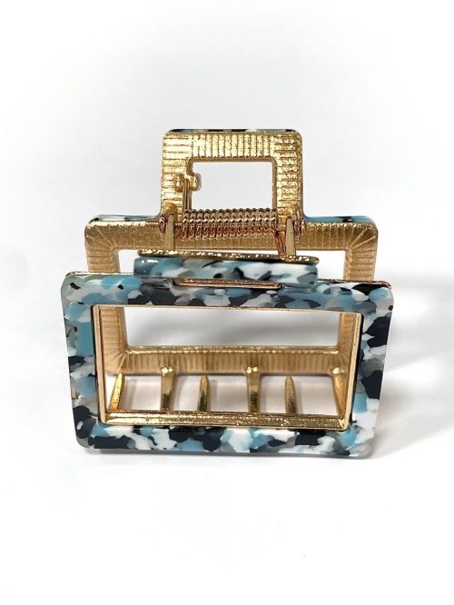 Teal/Black/White Speckled Gold Claw Clip 4863