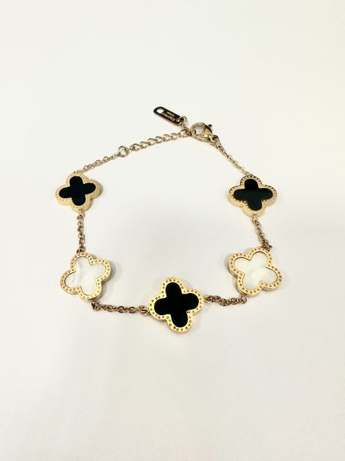 Black & White Gold Clover Bracelet 7500