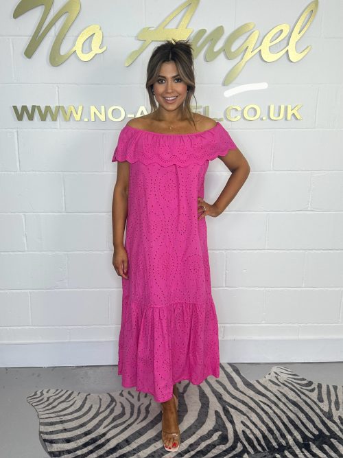 Fuschia Bardot Embroidery Anglaise Maxi Dress 551