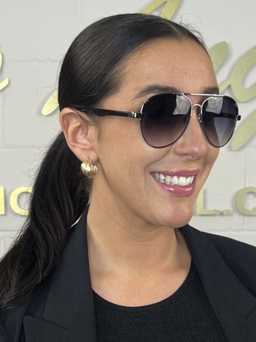 Black Aviator Pewter Frame Arm Sunglasses 4965