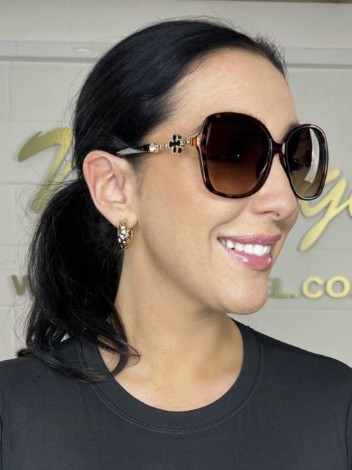 Tortoiseshell Oval Black Clover Chain Diamond Arm Sunglasses 9326