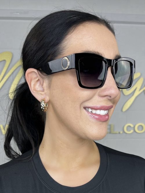 Black Rectangle Square Shaped Sunglasses With Gold Circle Detailing 9317