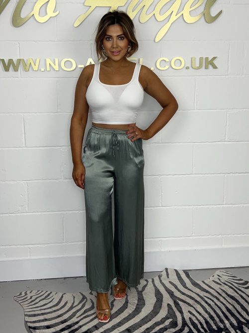 Neutral Woven Effect Cropped Vest Top & Wide Leg Trouser Co-Ord 1030