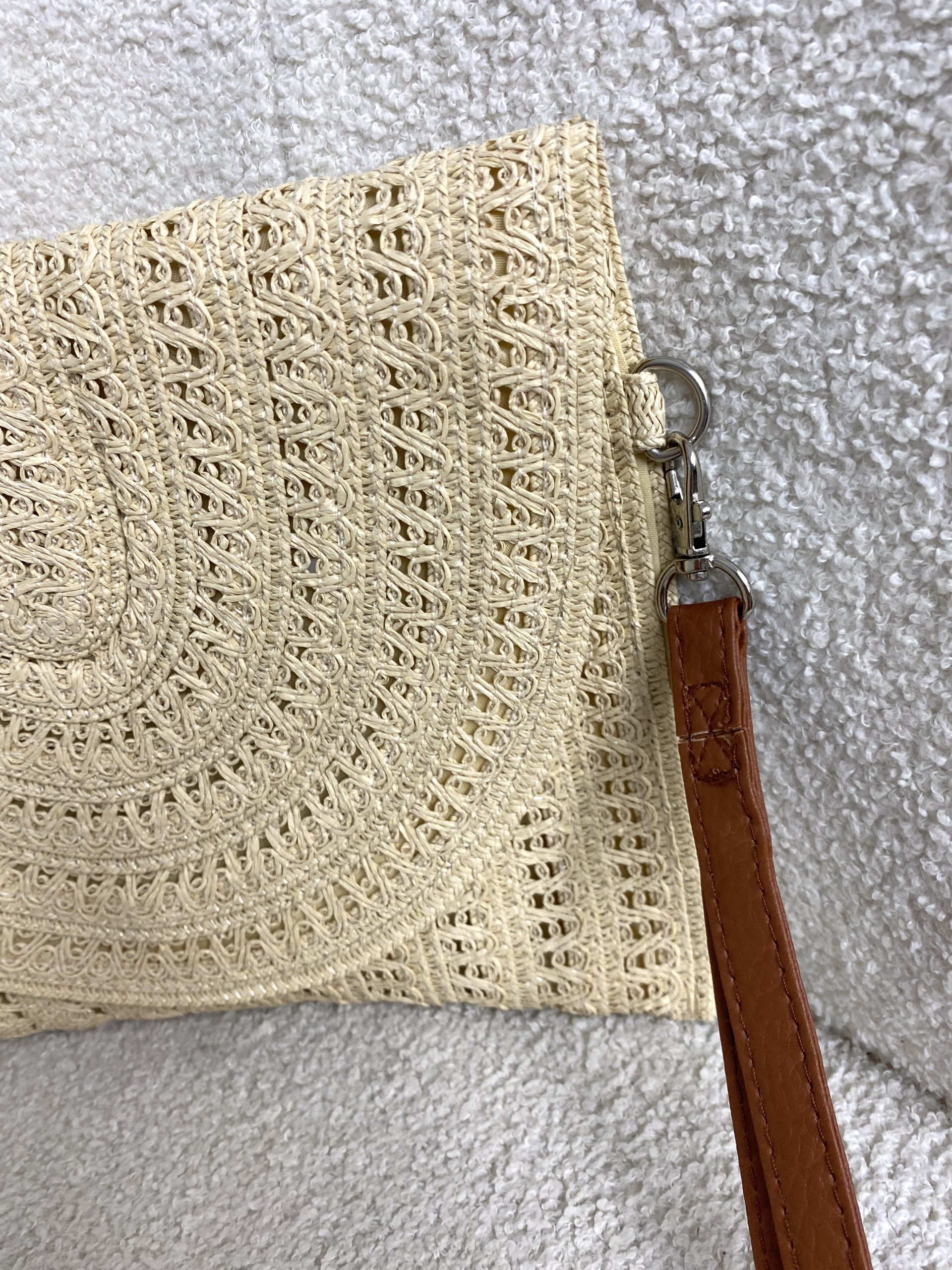 Crochet Straw Envelope Clutch Bag , Inner Longer Detachable Strap