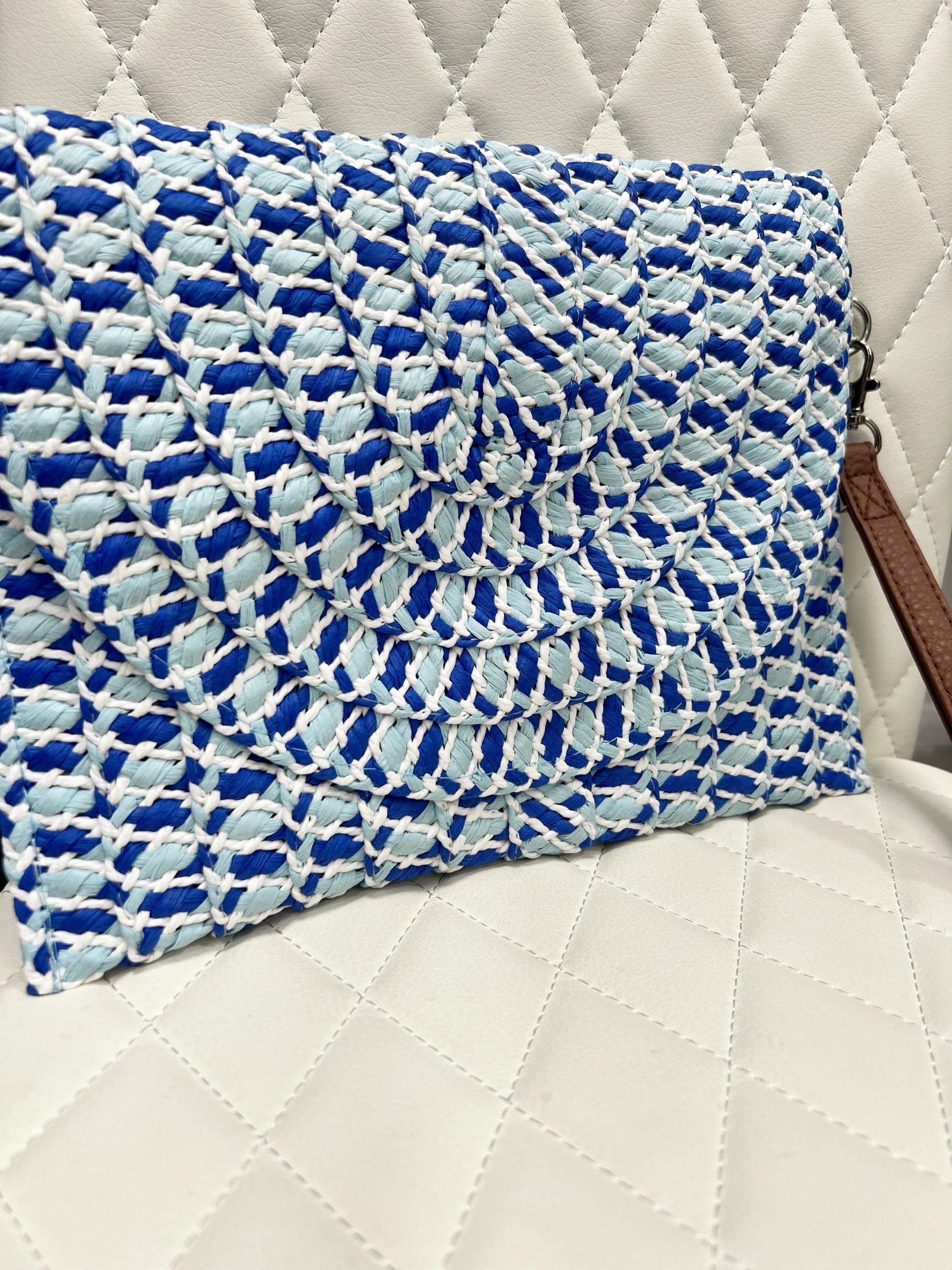 Flecked Woven Straw Envelope Style Clutch Bag , Inner Detachable Strap.