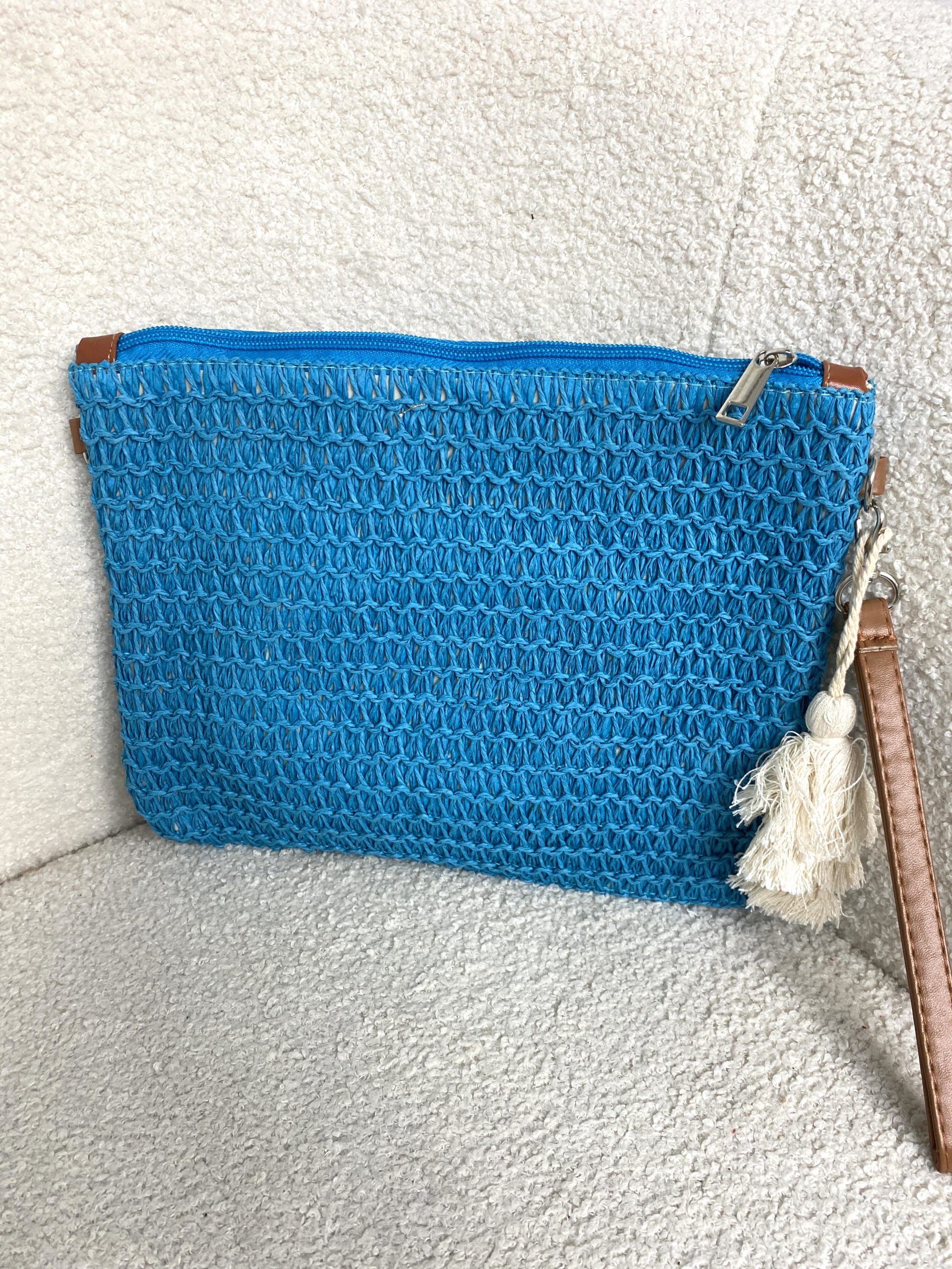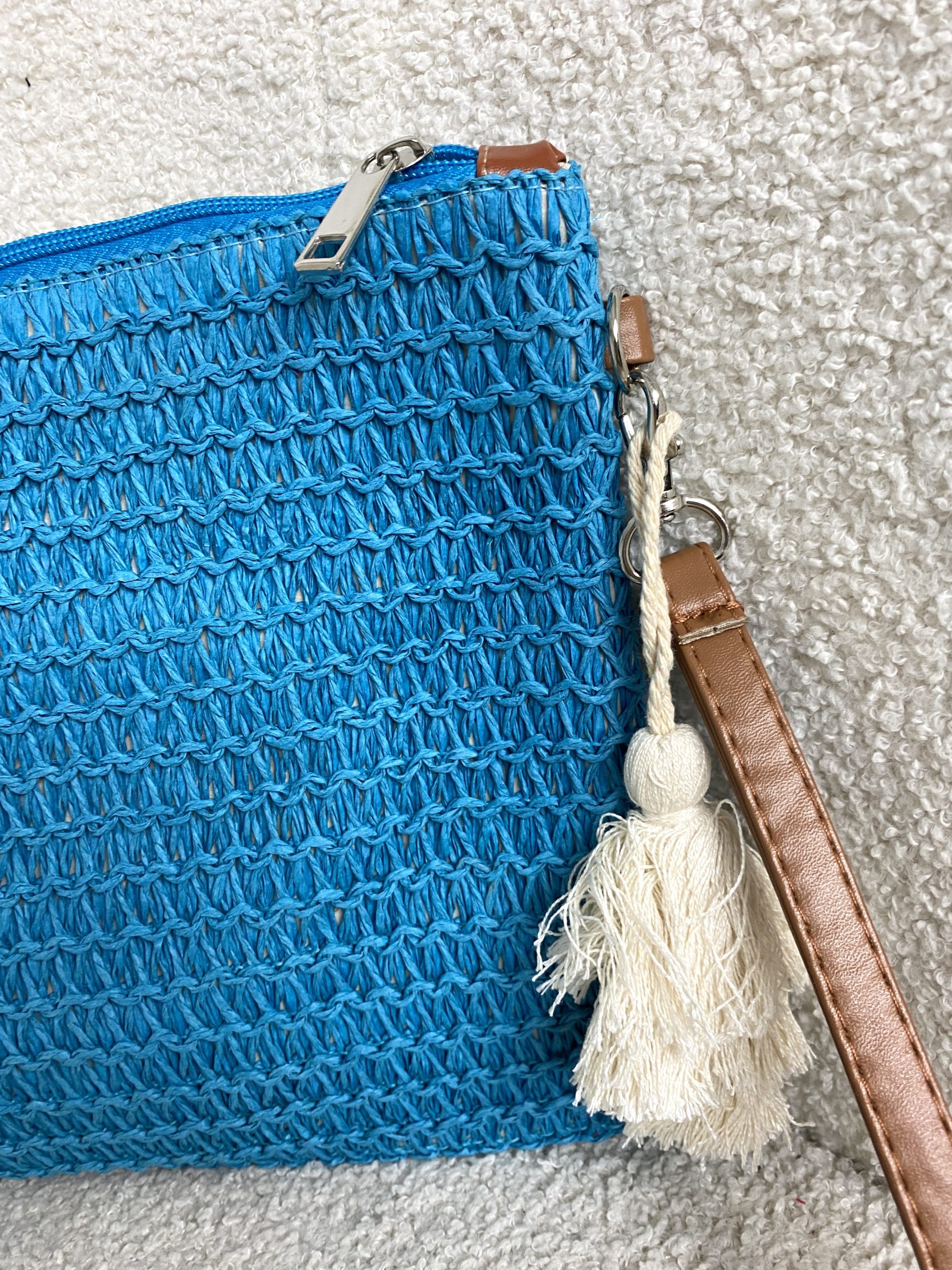 Tassel Woven Straw Clutch Bag , Inner Detachable Strap , Full Zipper.