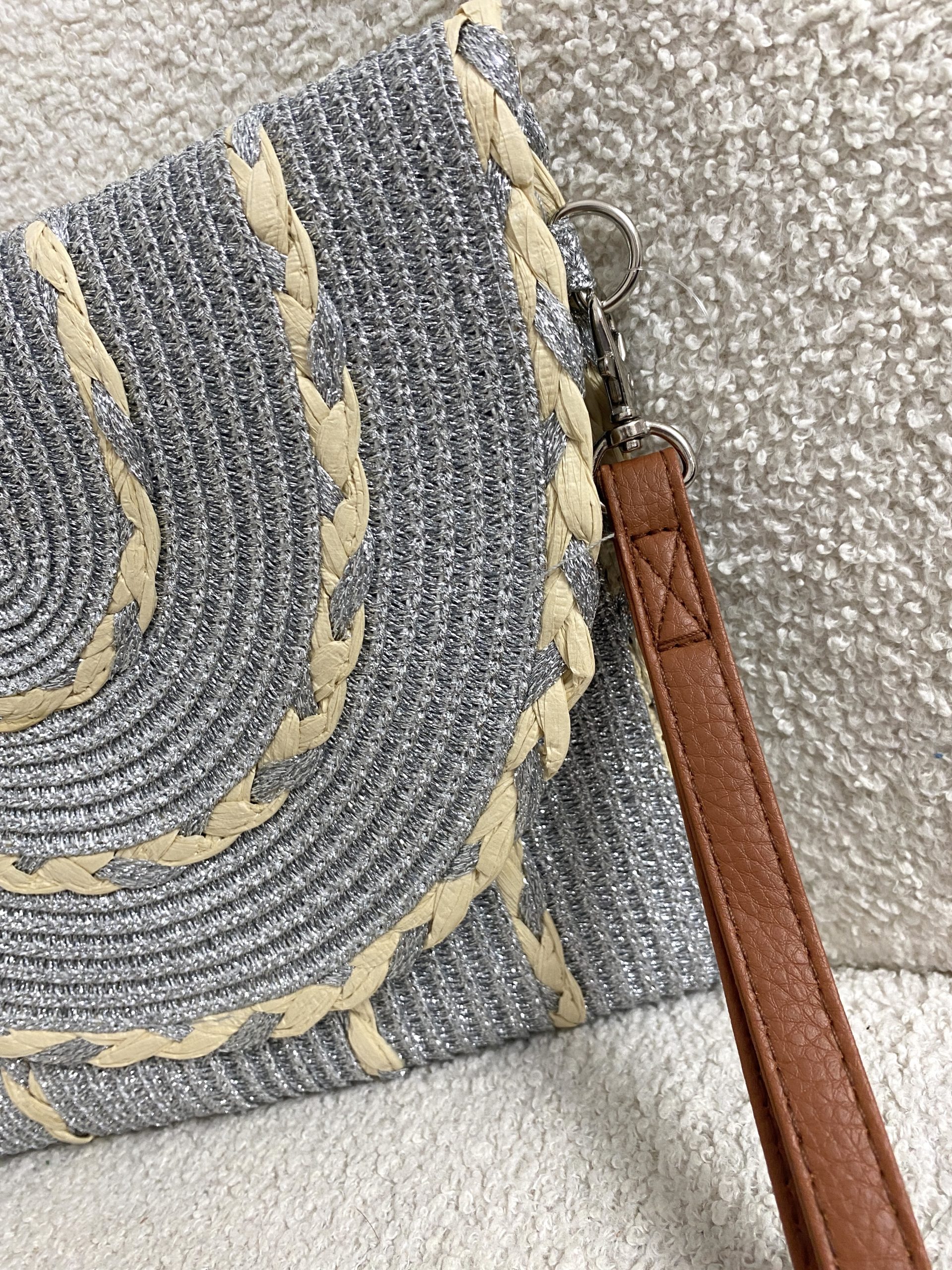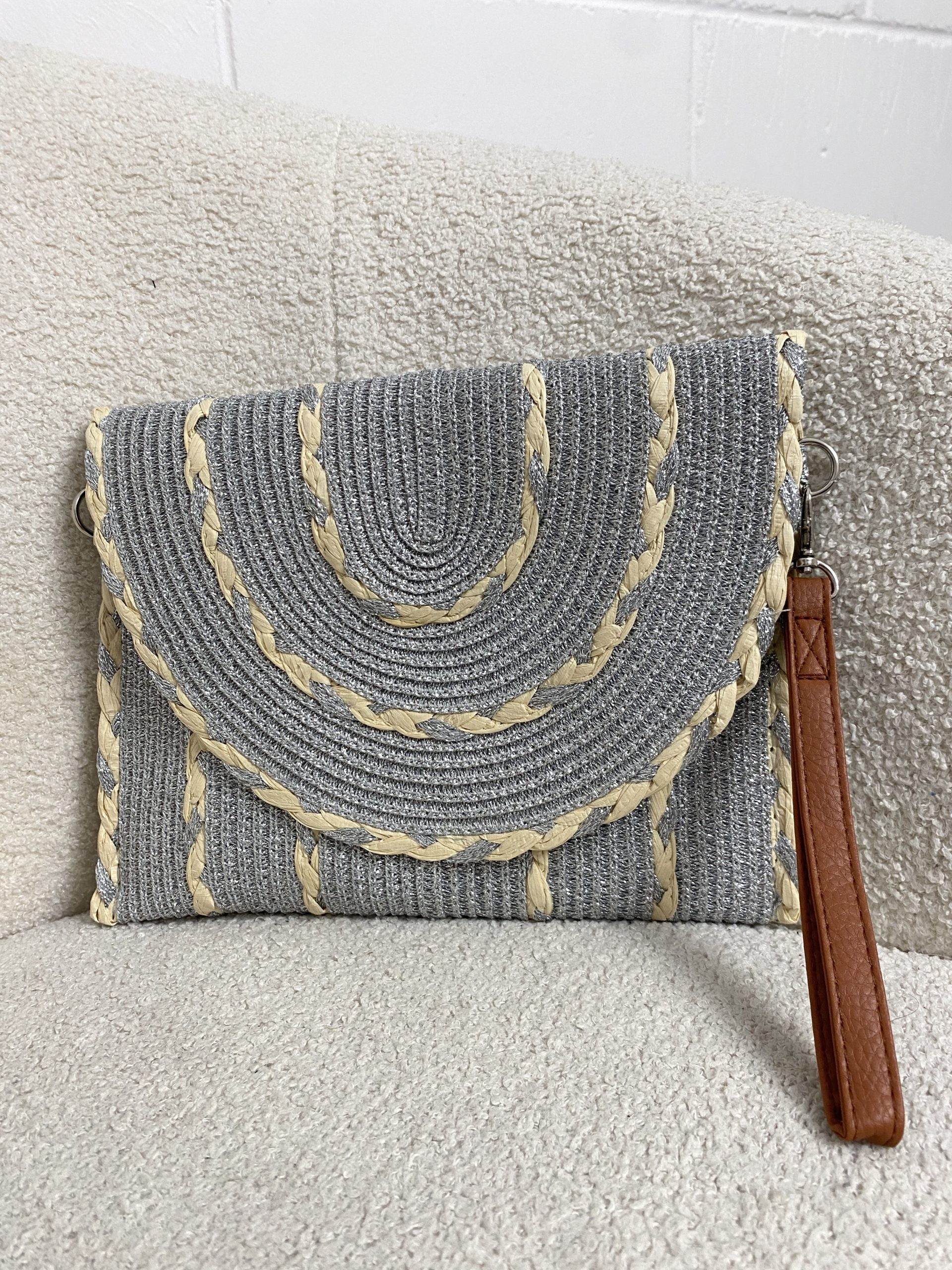 Woven Plaited Detail Clutch Bag , Inner Detachable Strap , Full Zipper.