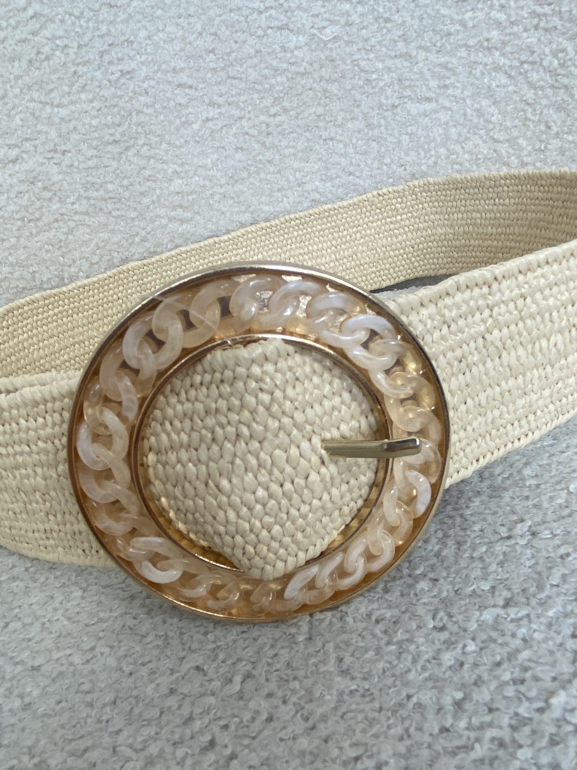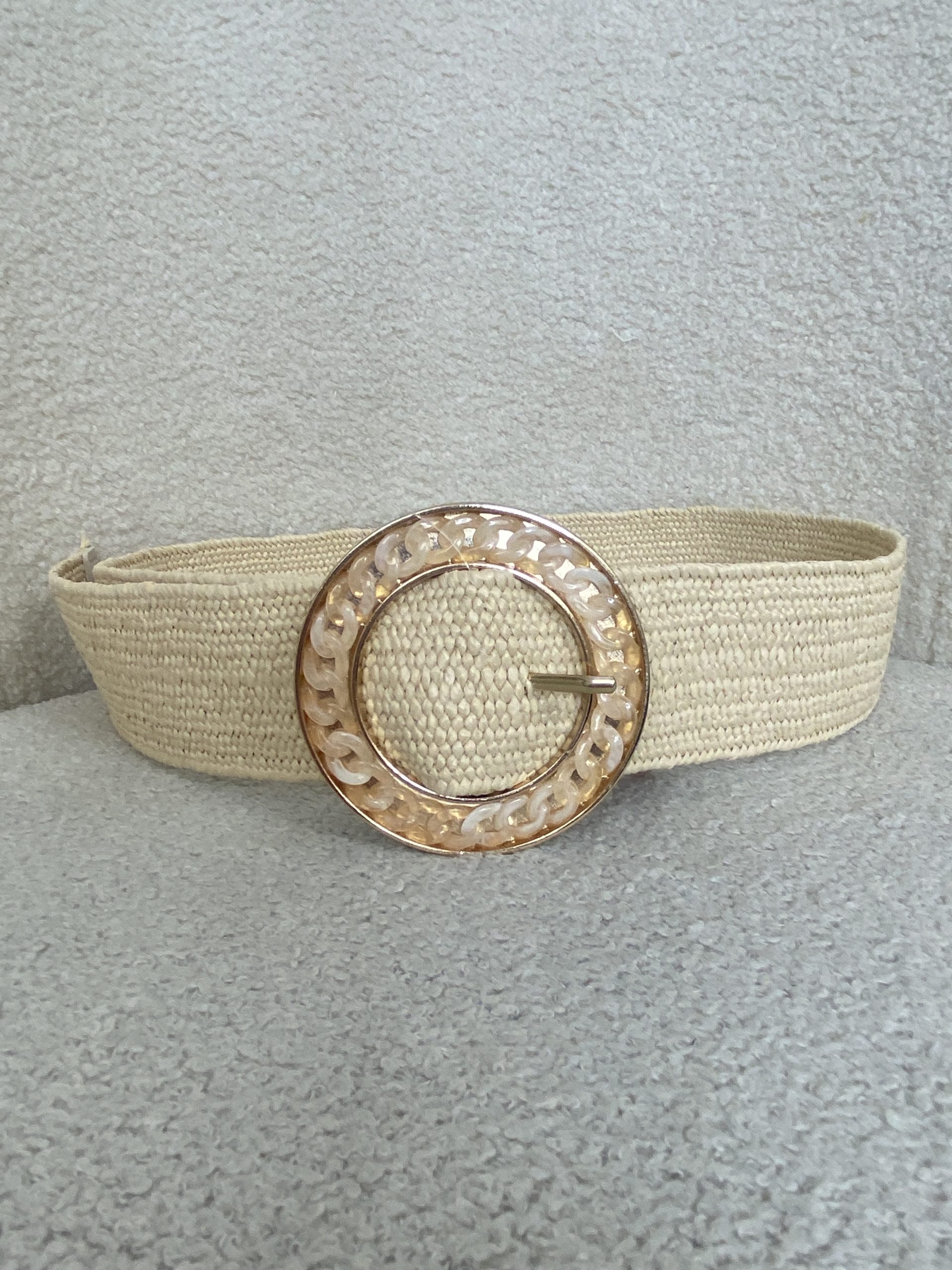 Woven Stretch Belt With A Marble Look Twisted Buckle Belt , Fits Any Size.