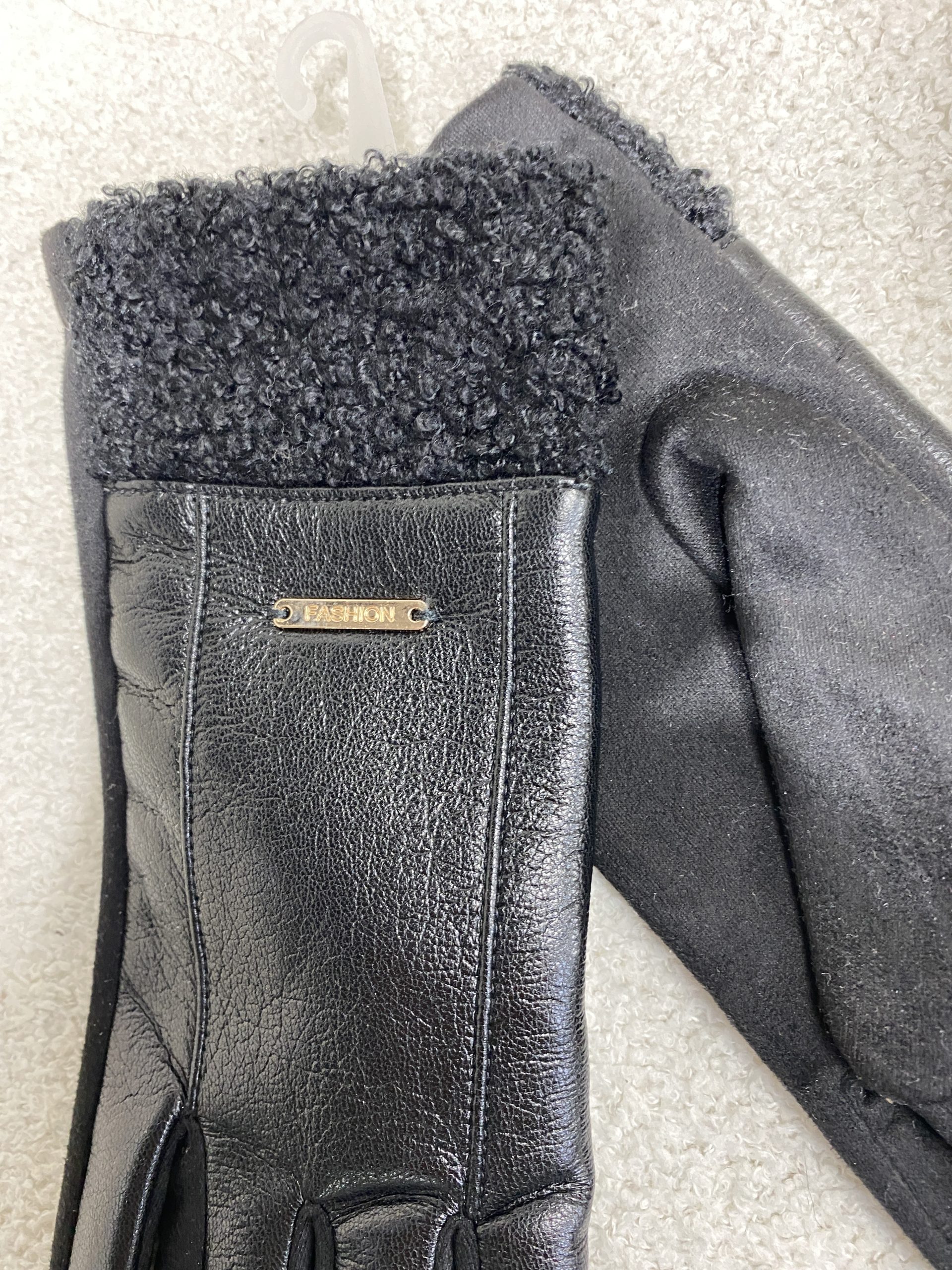 Be the first to review “Black Leather Look Faux Shearling Trim Gloves 7830”