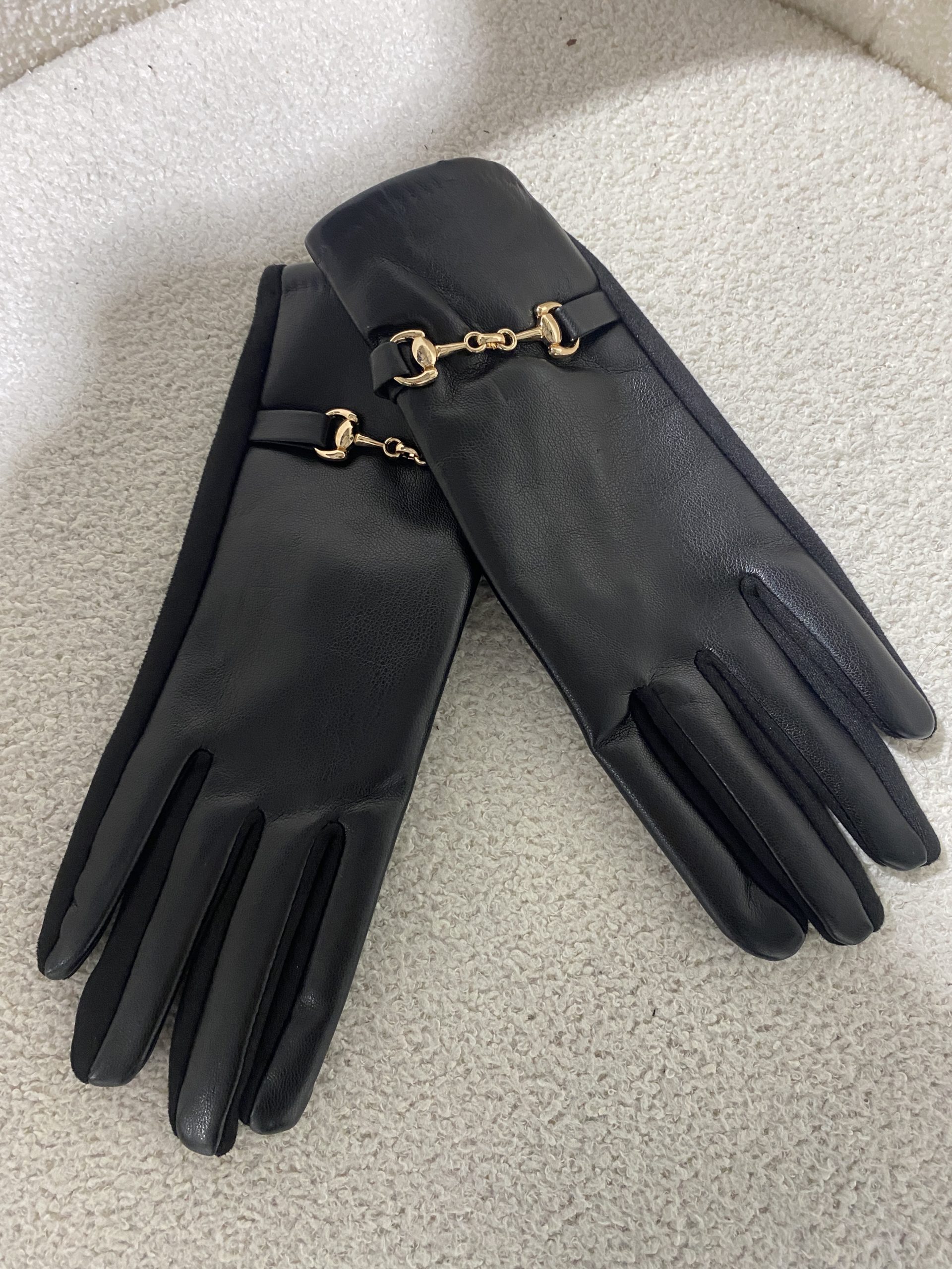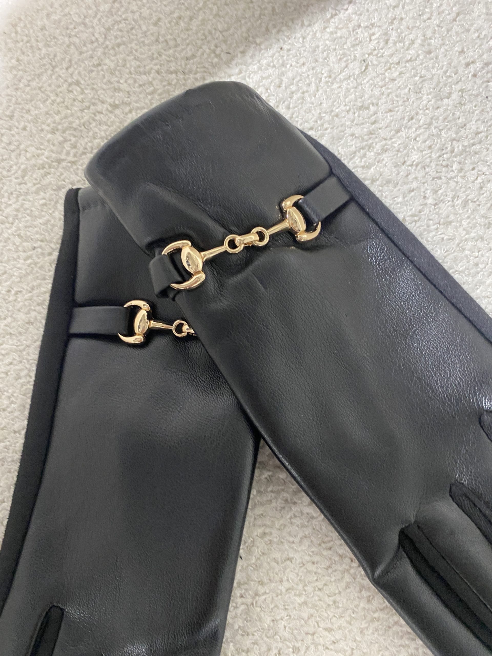 Black Leather Look Gold Buckle Touch Screen Gloves.
