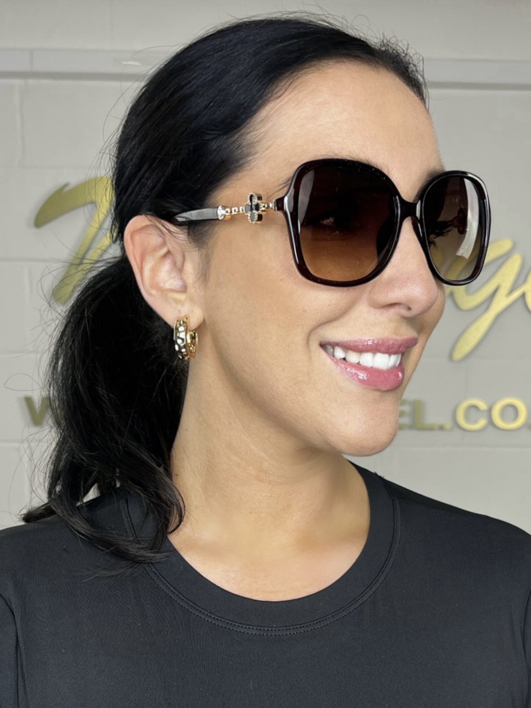 Oval Black Clover Chain Diamond Arm Sunglasses 9327