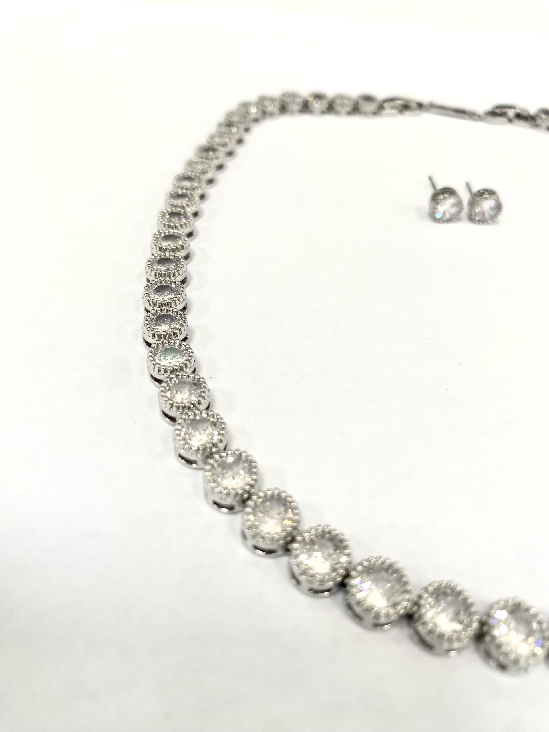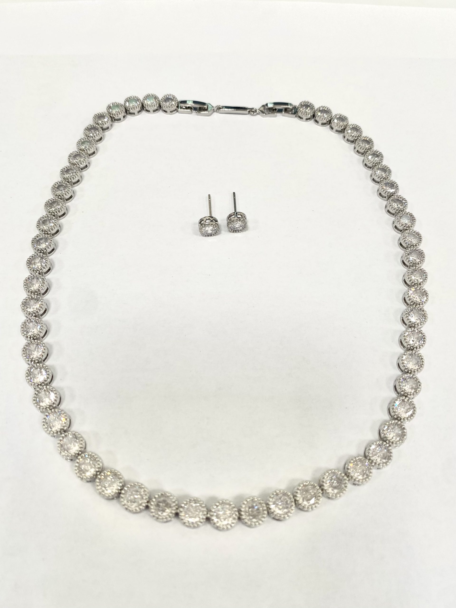 Diamonté Circle Gem Necklace With Matching Stud Earrings Set.