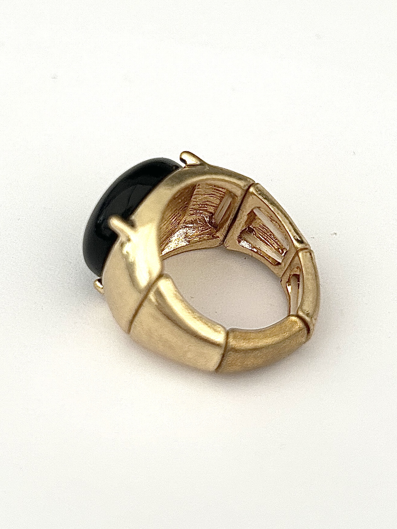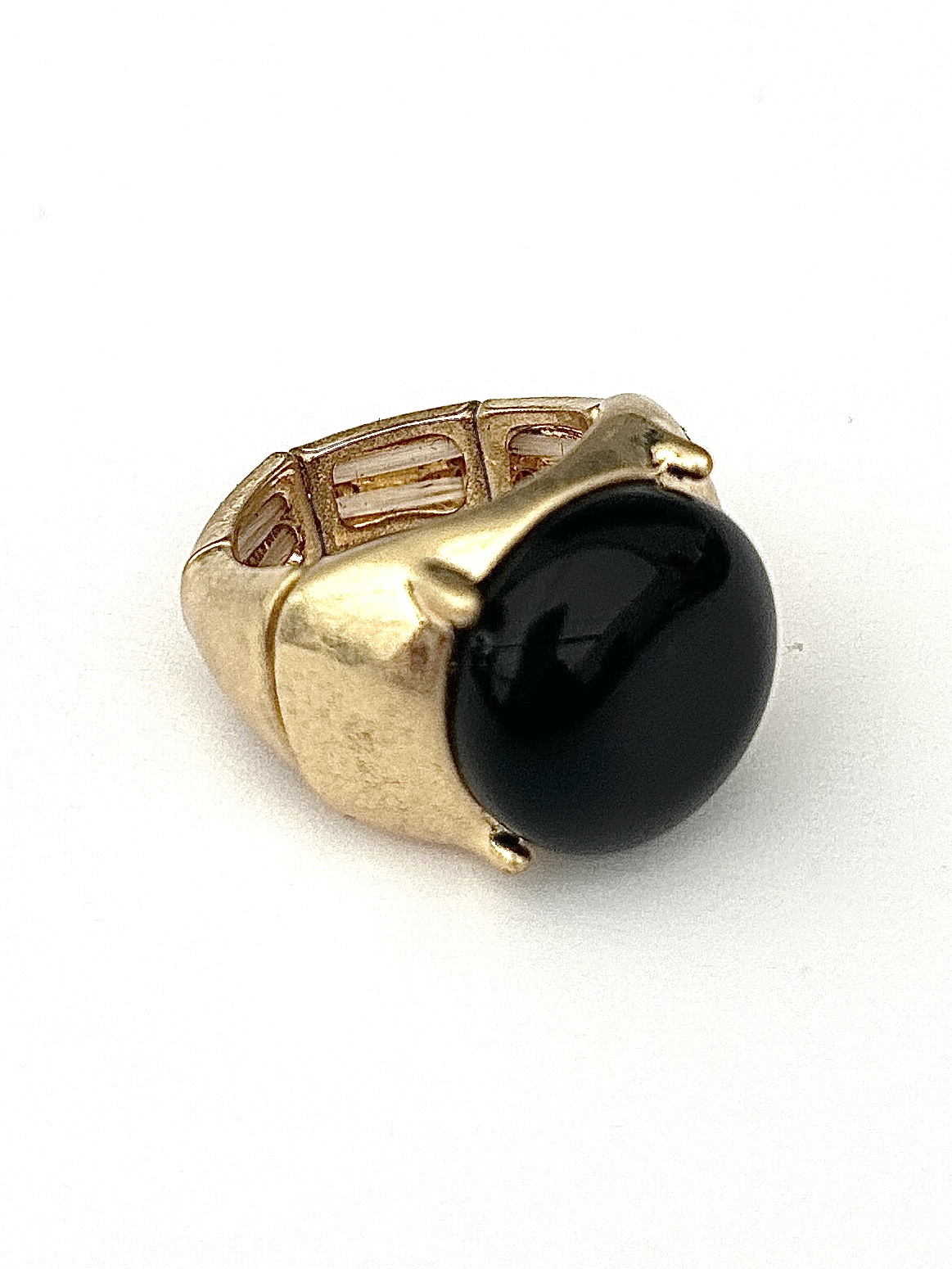 Gold Adjustable Ring With Black Stone.