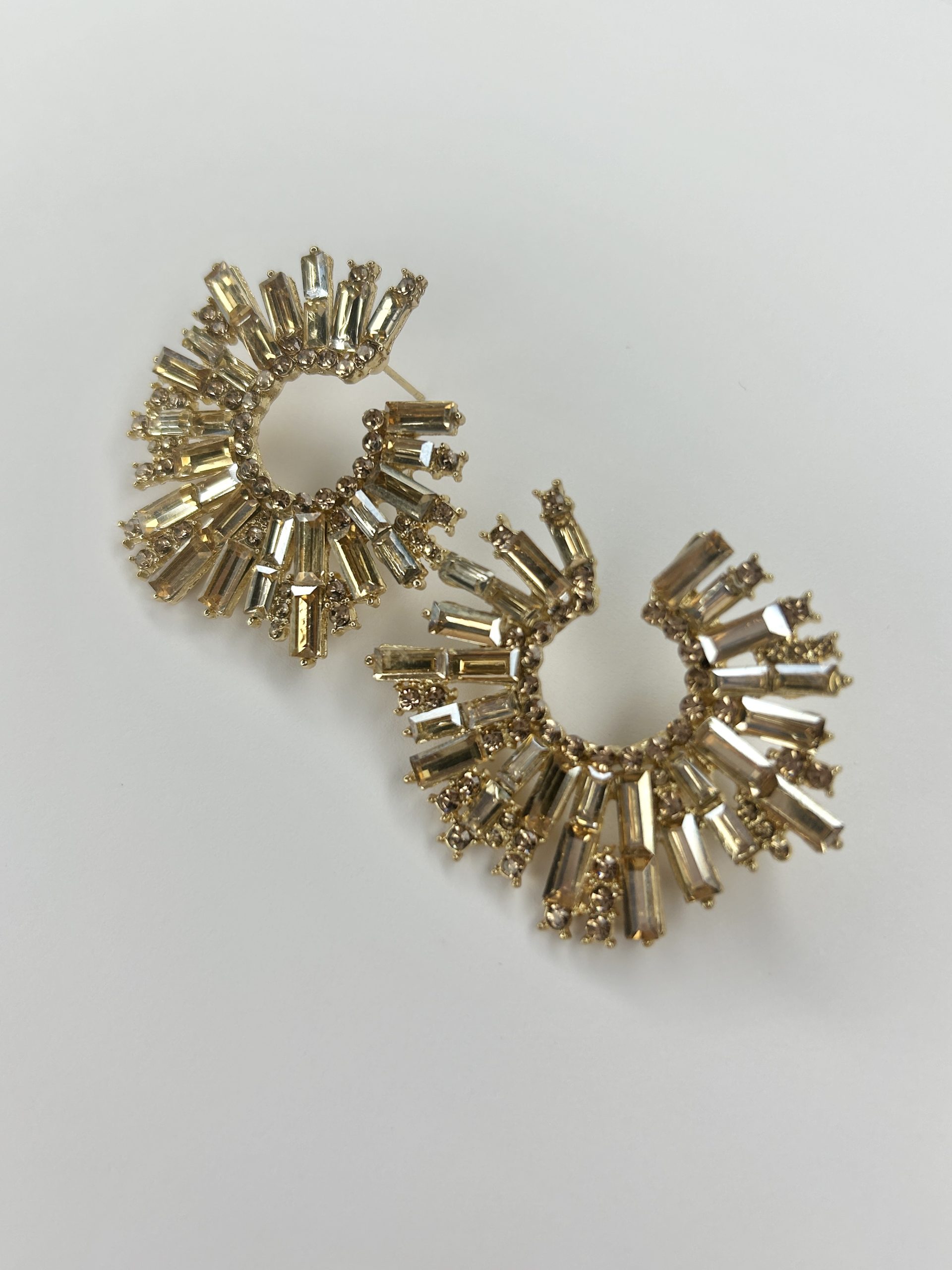 Gold Beaded Diamonte Cluster Earrings.