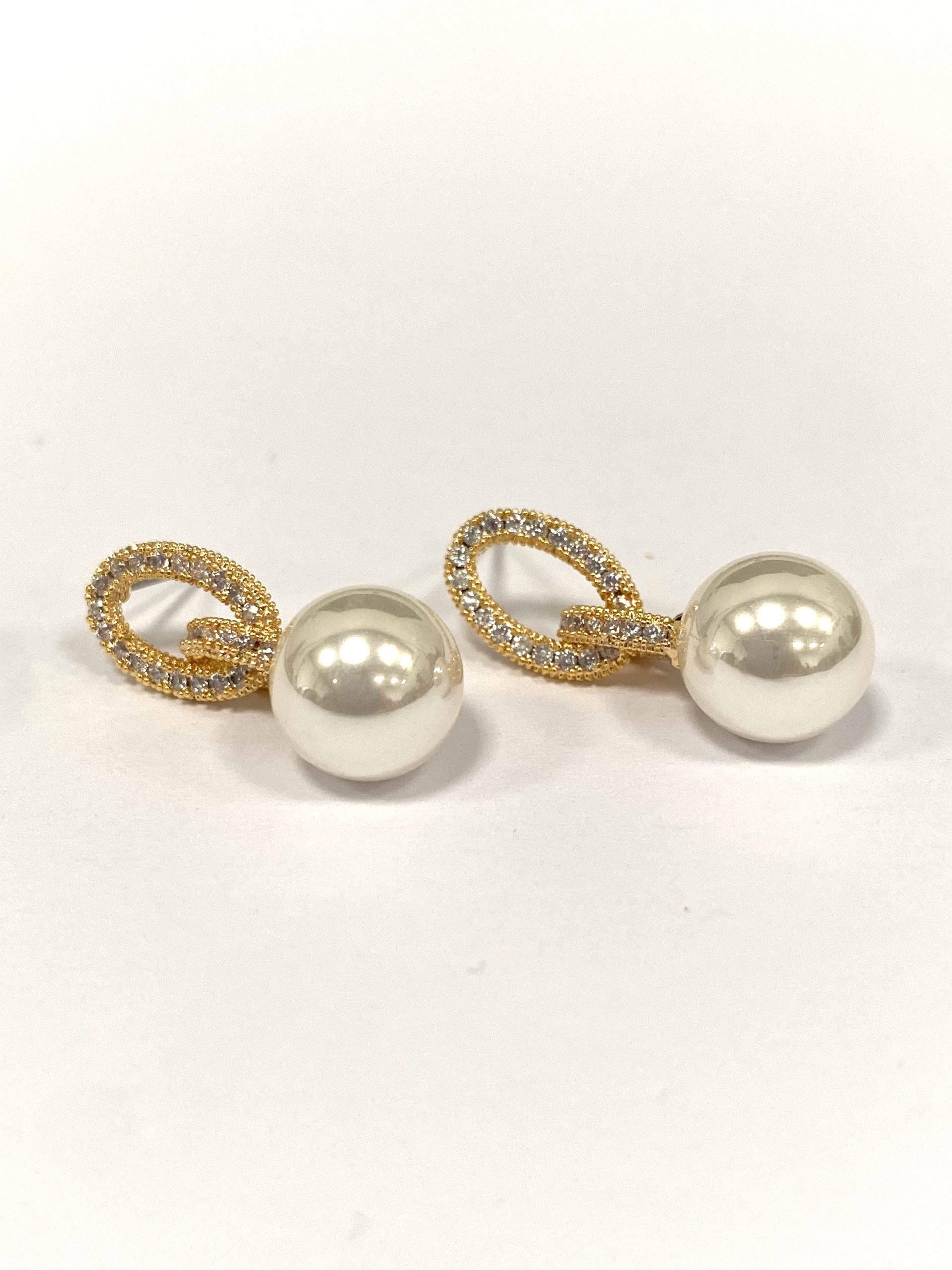 Gold & Diamonté Pearl Drop Earrings.
