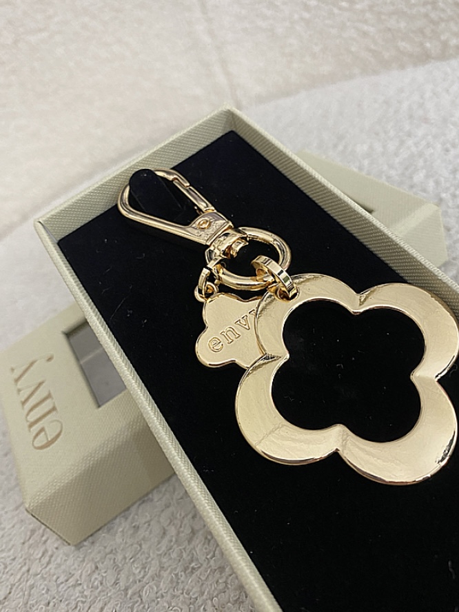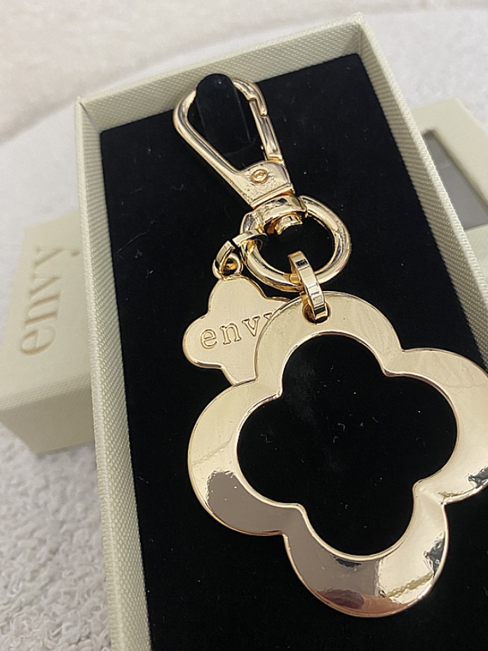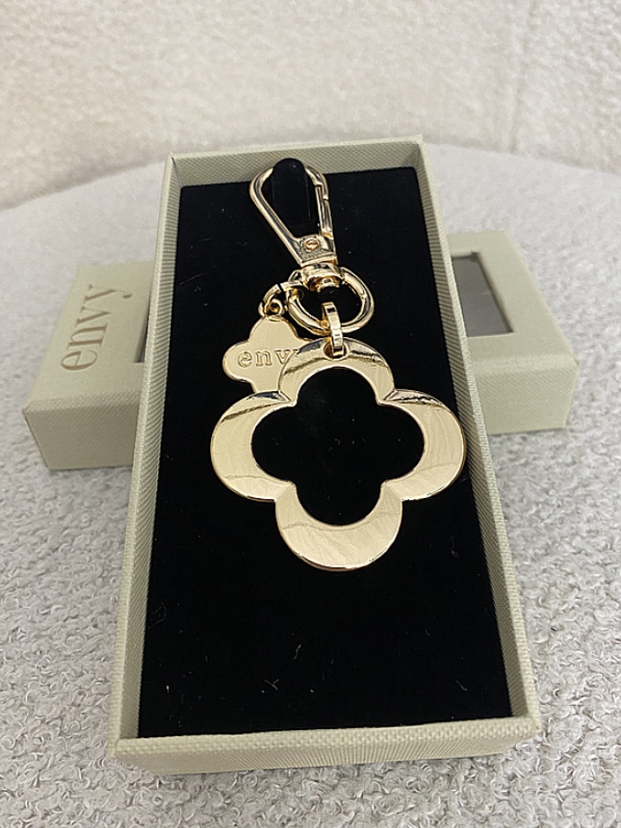 Gold Hanging Double Clover Keyring , Open Clip To Attach Keys , Comes In Cute Box.