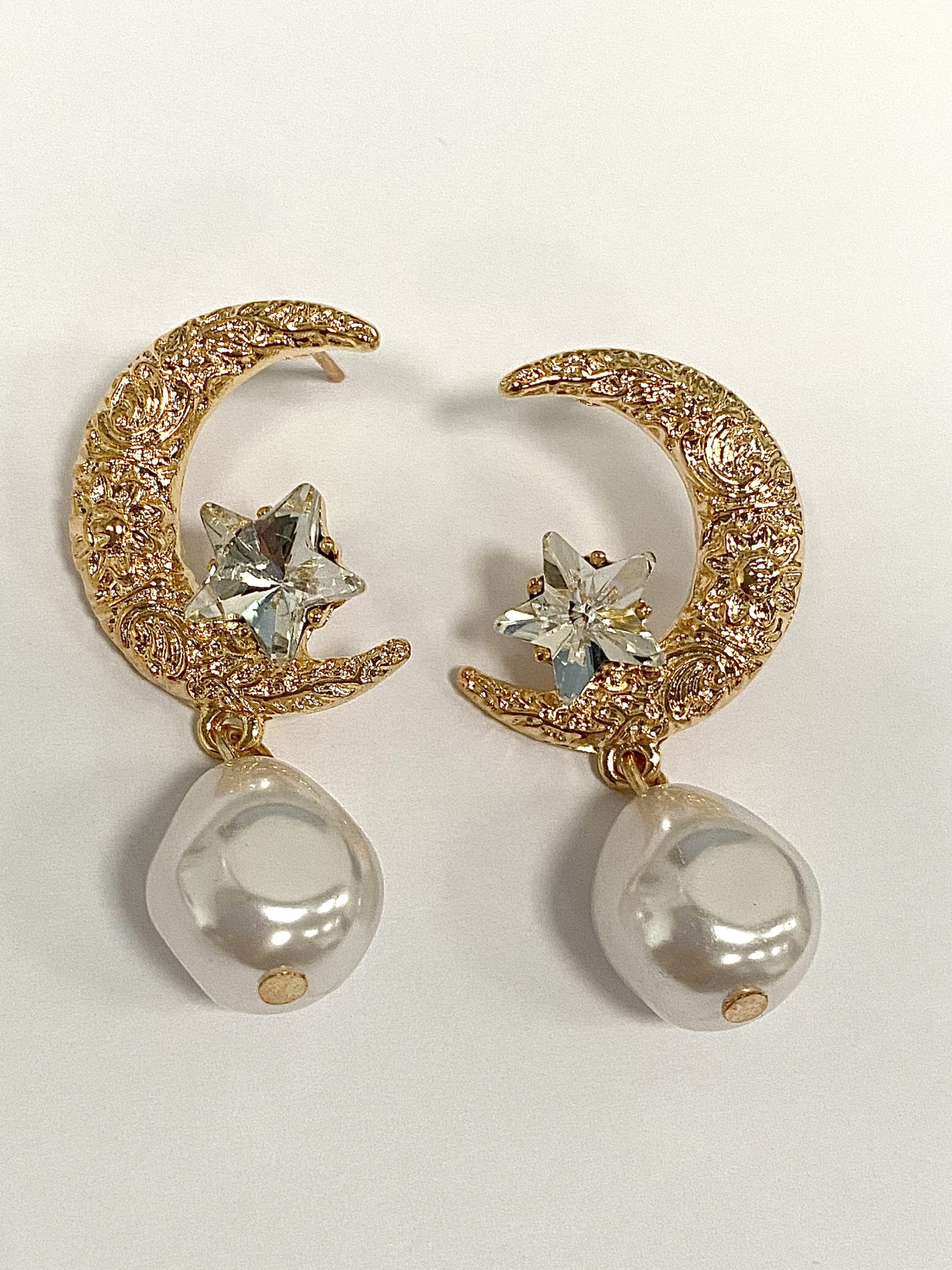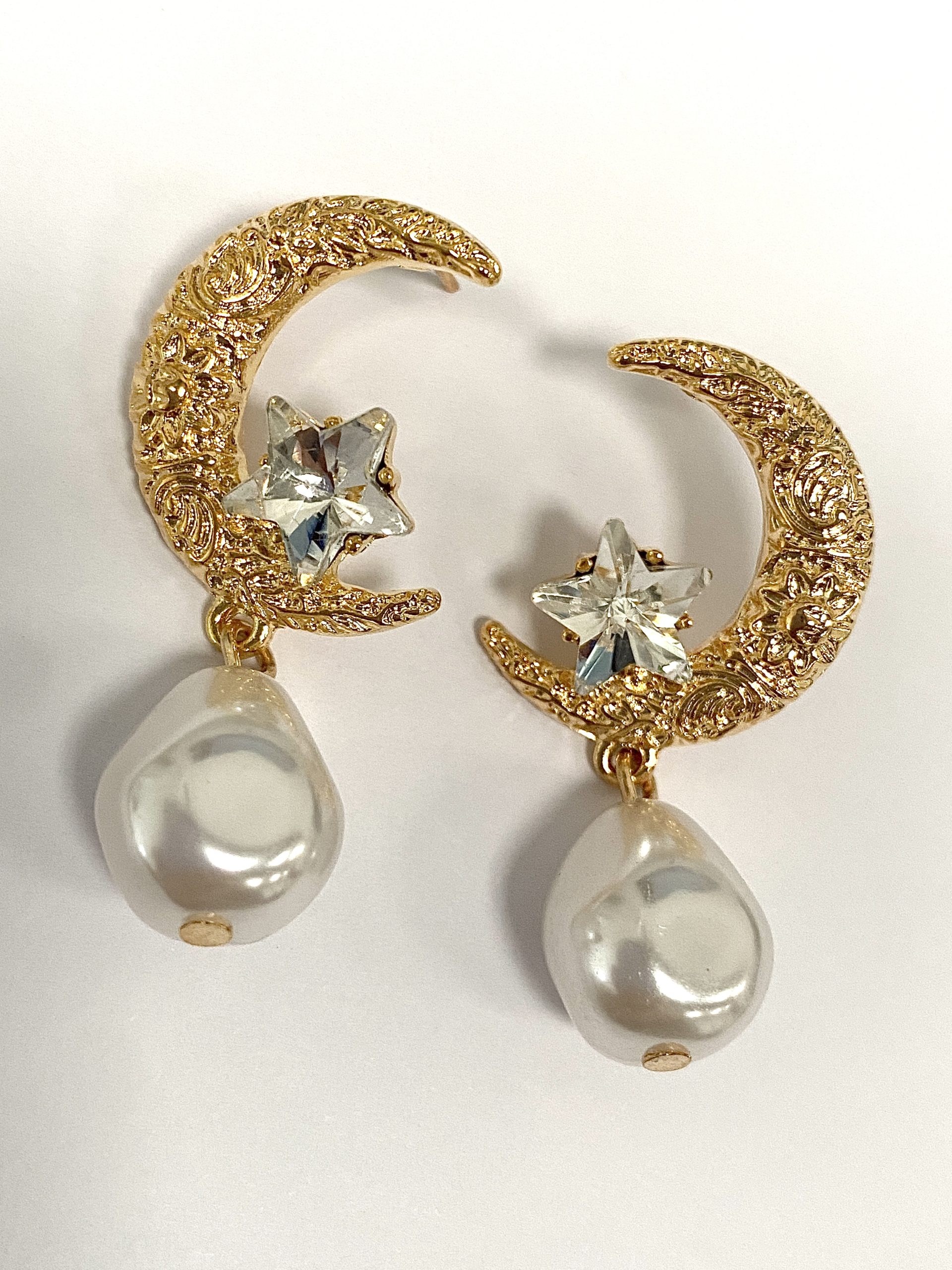 Gold Moon Star & Pearl Drop Earrings.