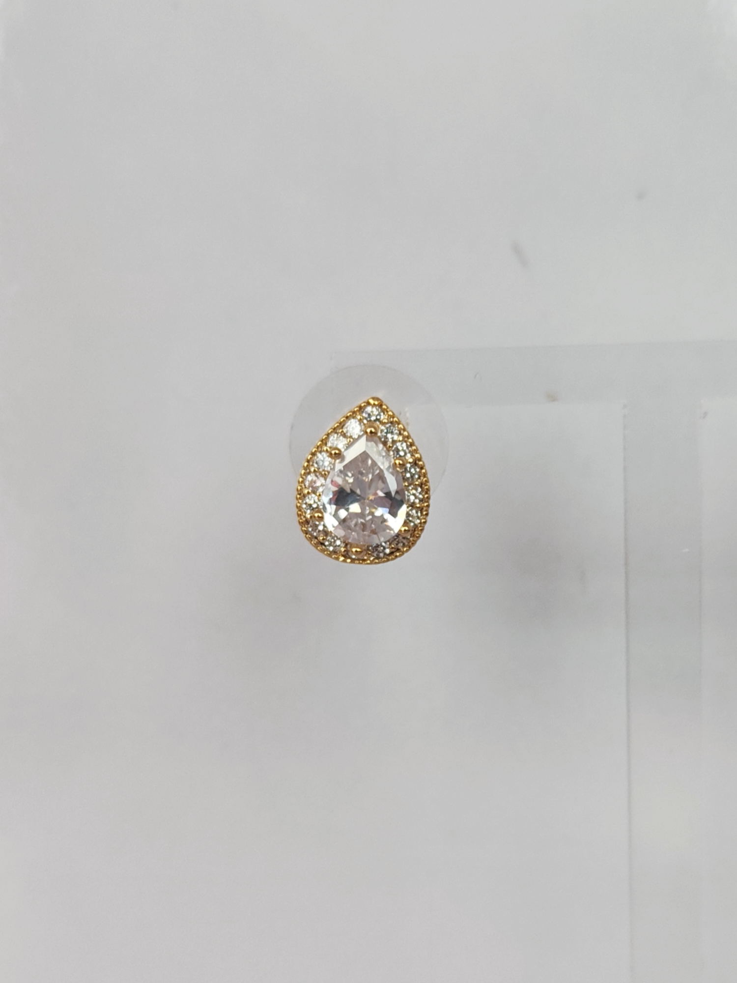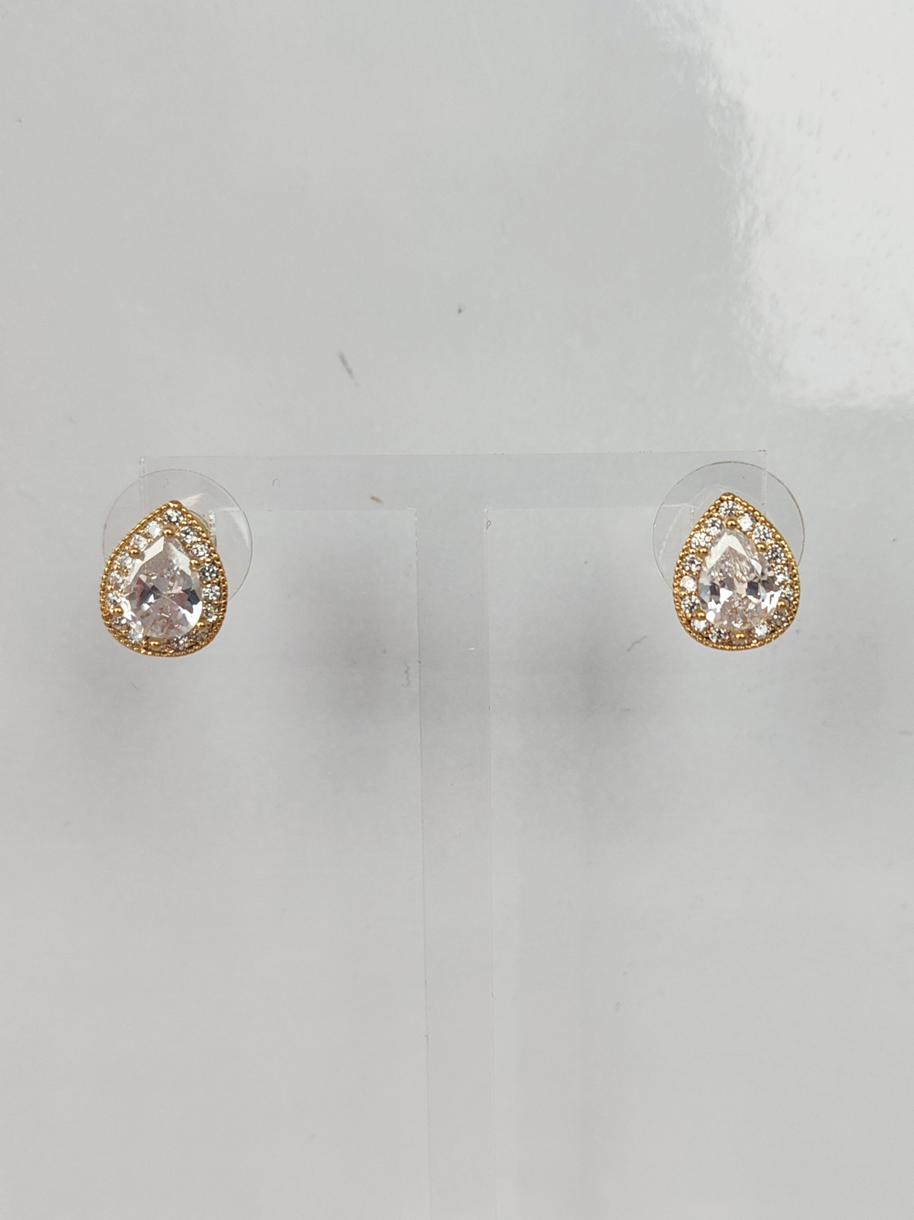 Small Gold Pear Earrings with Silver Gem. Stud Back.