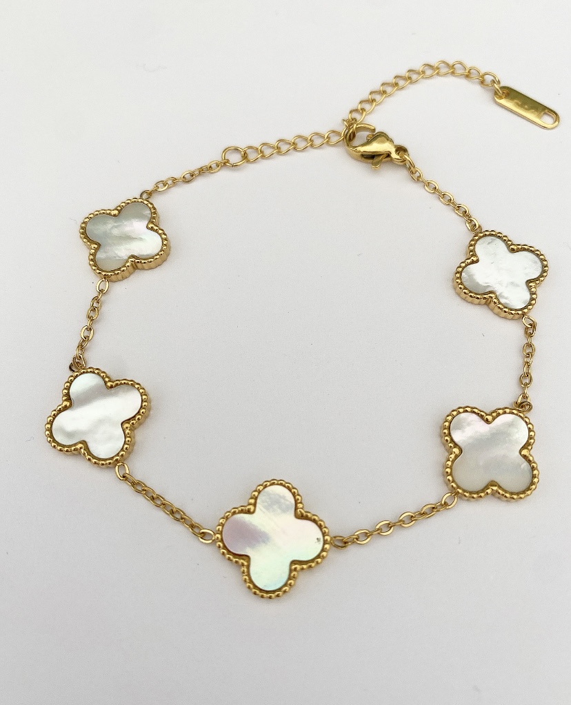 Gold and pearl white clover bracelet.