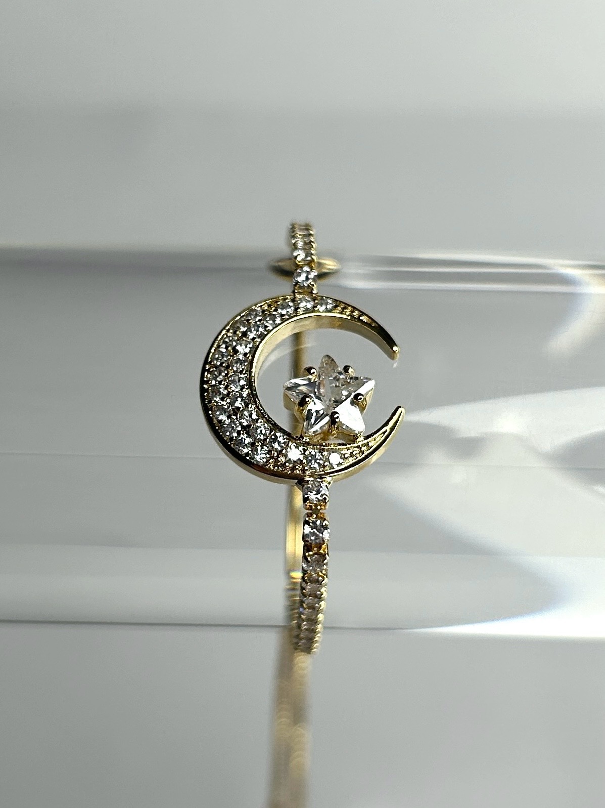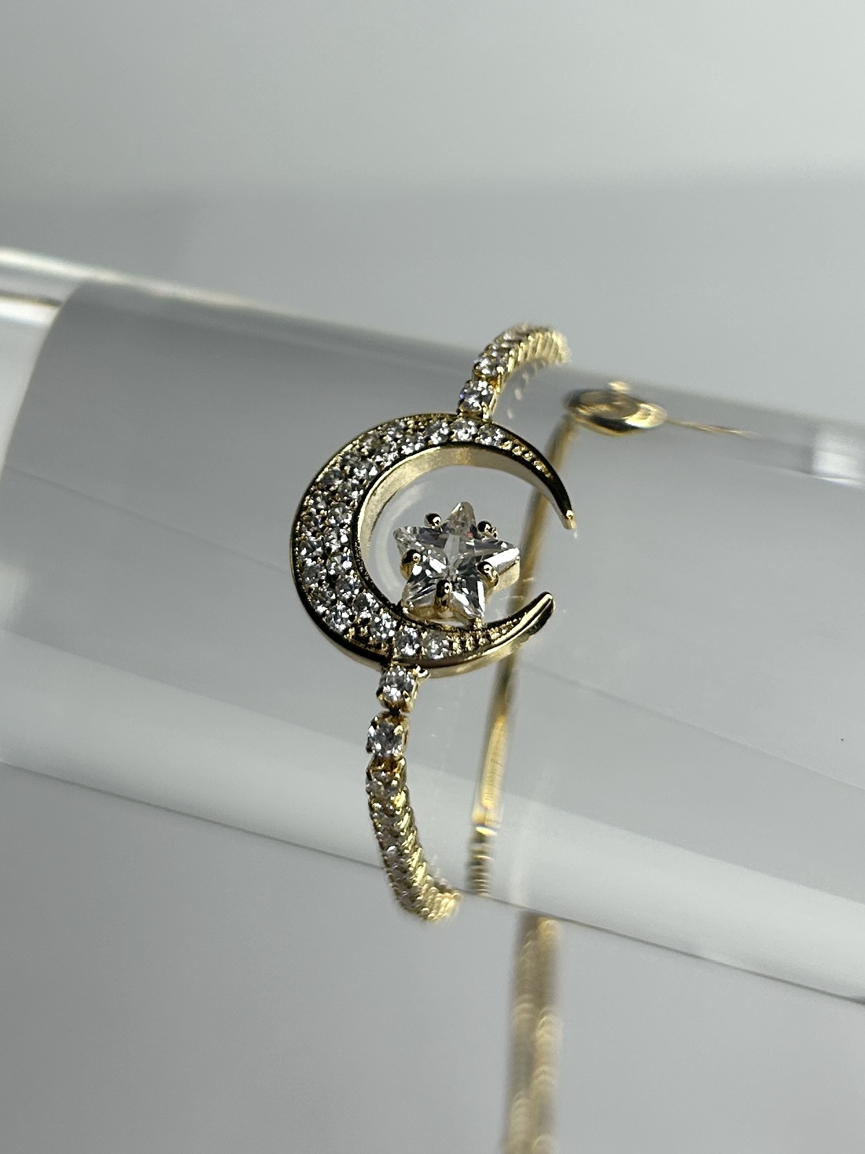 Gold Bracelet with Moon & Silver Star Pendant, Smaller Silver Gems