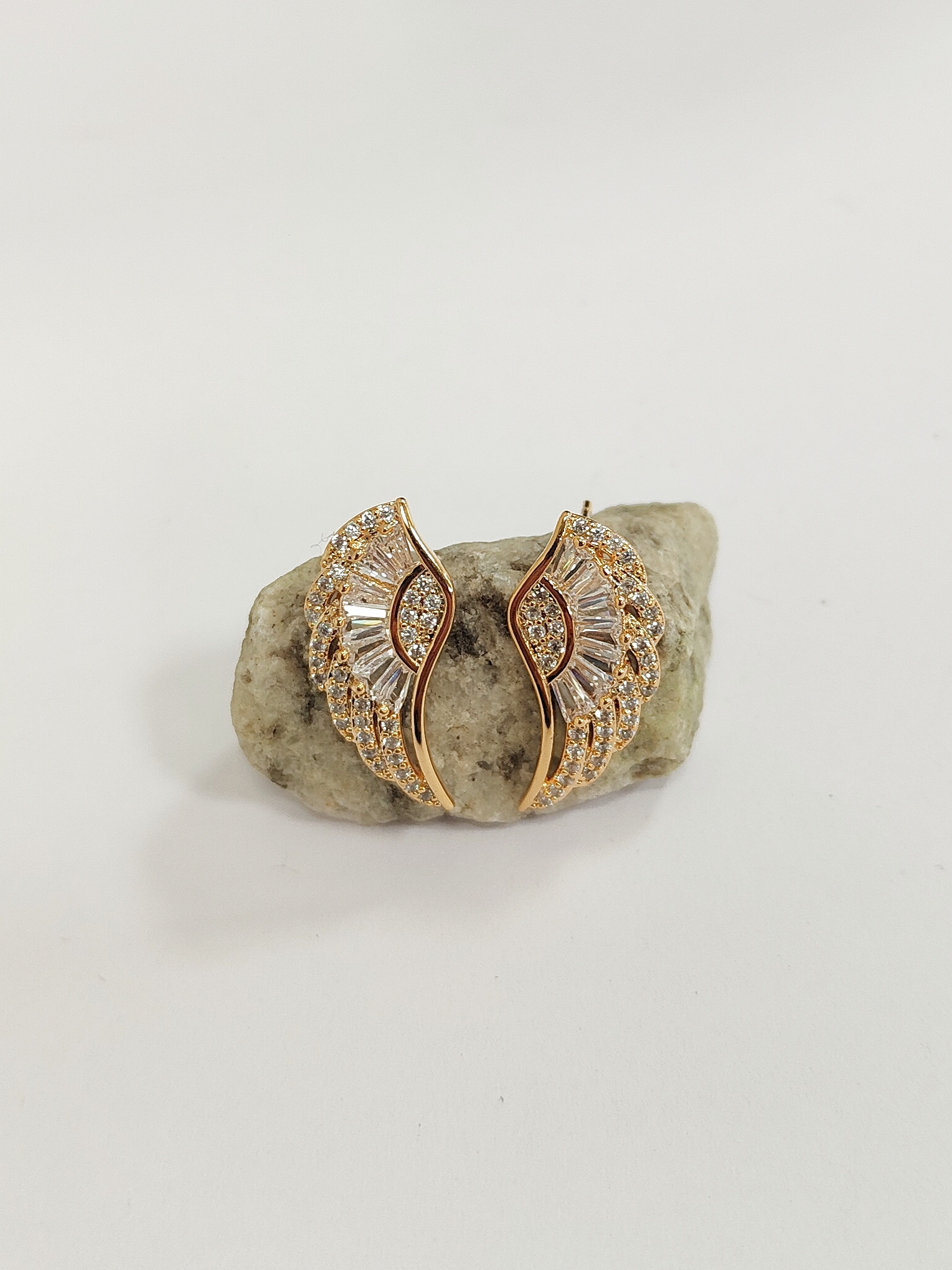 Gold Small Angel Wing Earrings With Silver gems