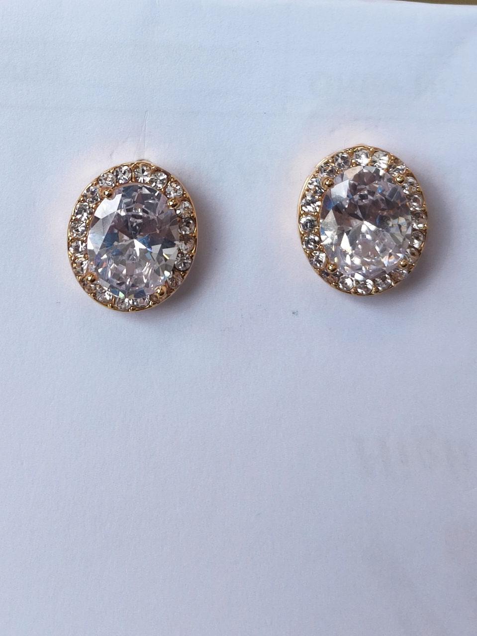 Small Gold Oval Earrings with Large Oval Gem Surrounded by Smaller Silver Gems.
