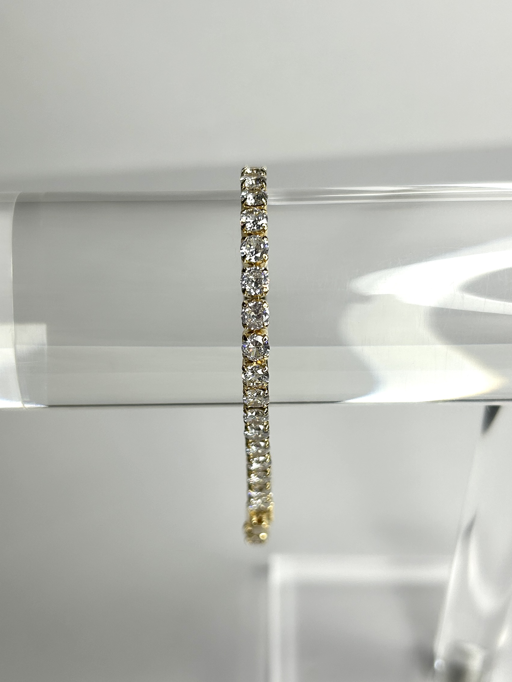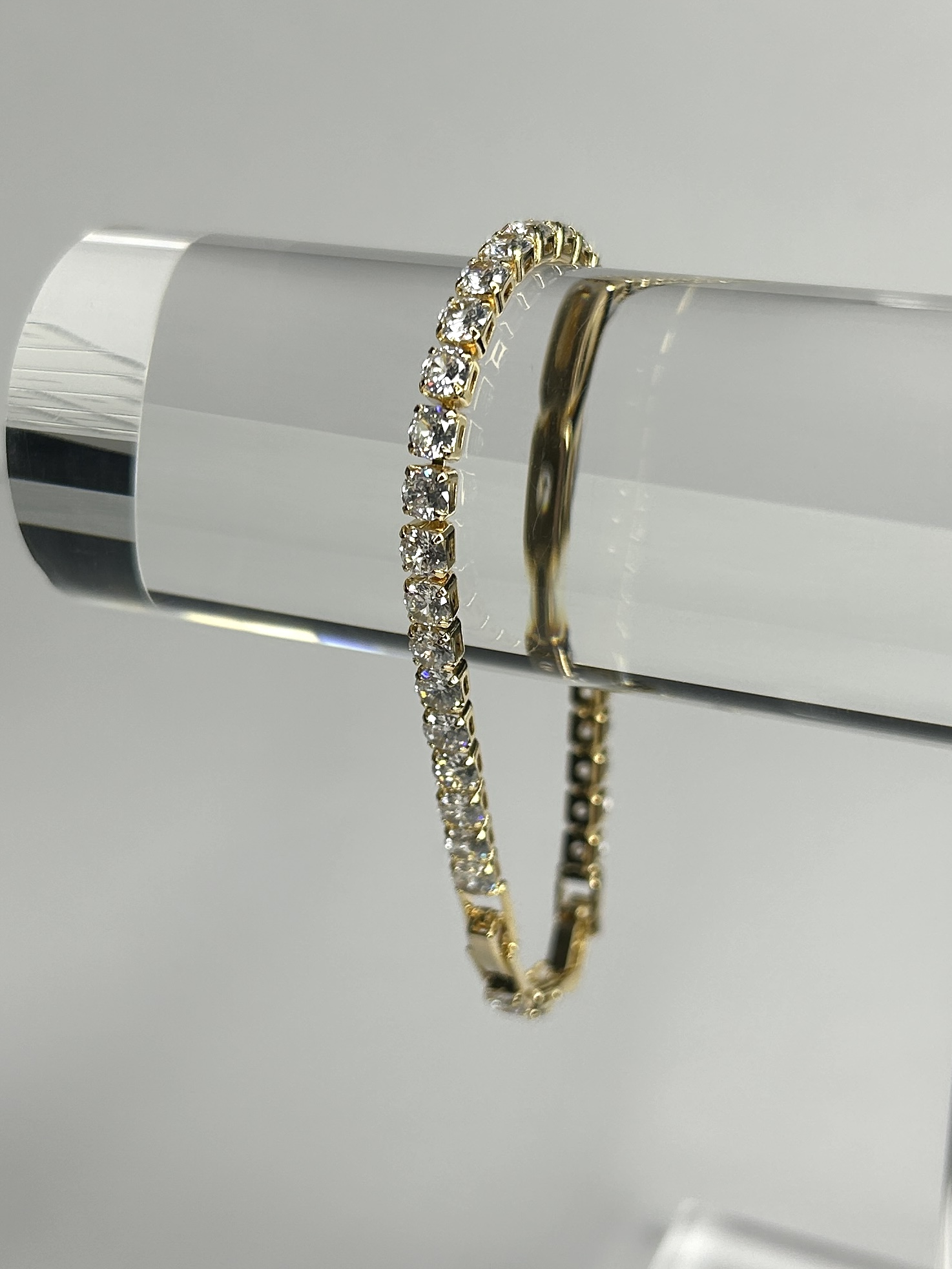 Gold Bracelet with Multi Silver Square Gems Around Bracelet.