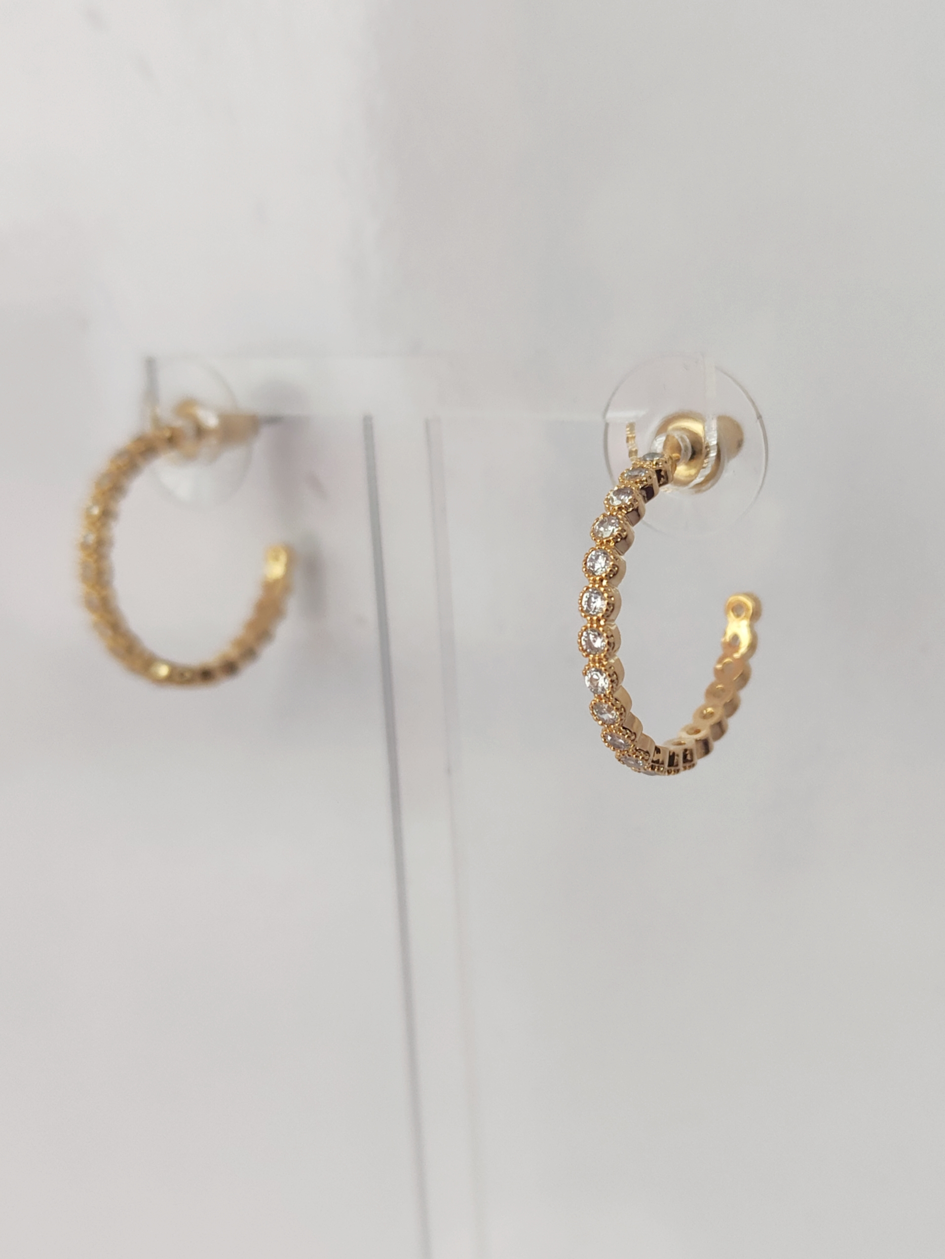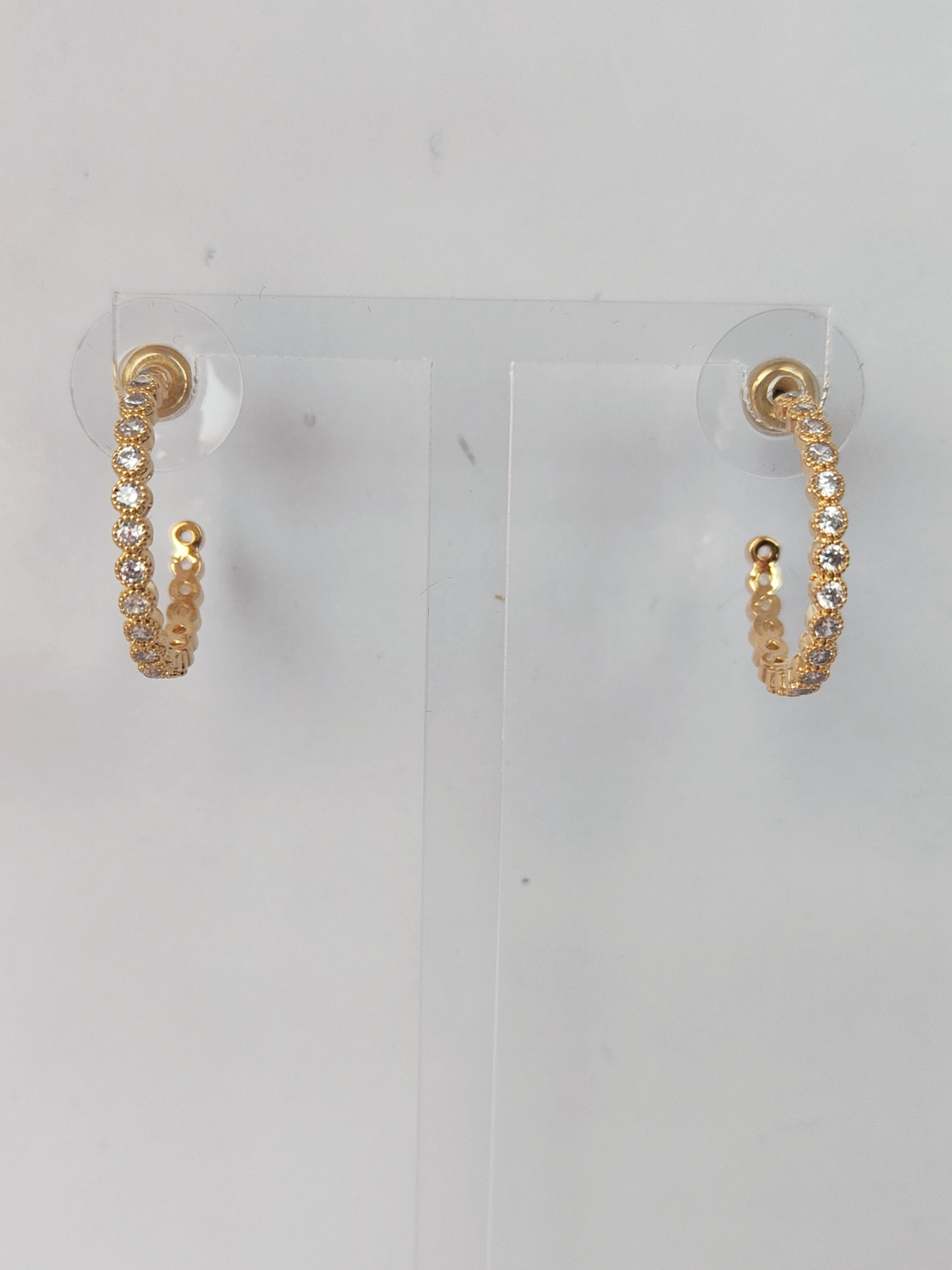 Small Gold Hoop Earrings with Stud Back, Multi Circle Gems.