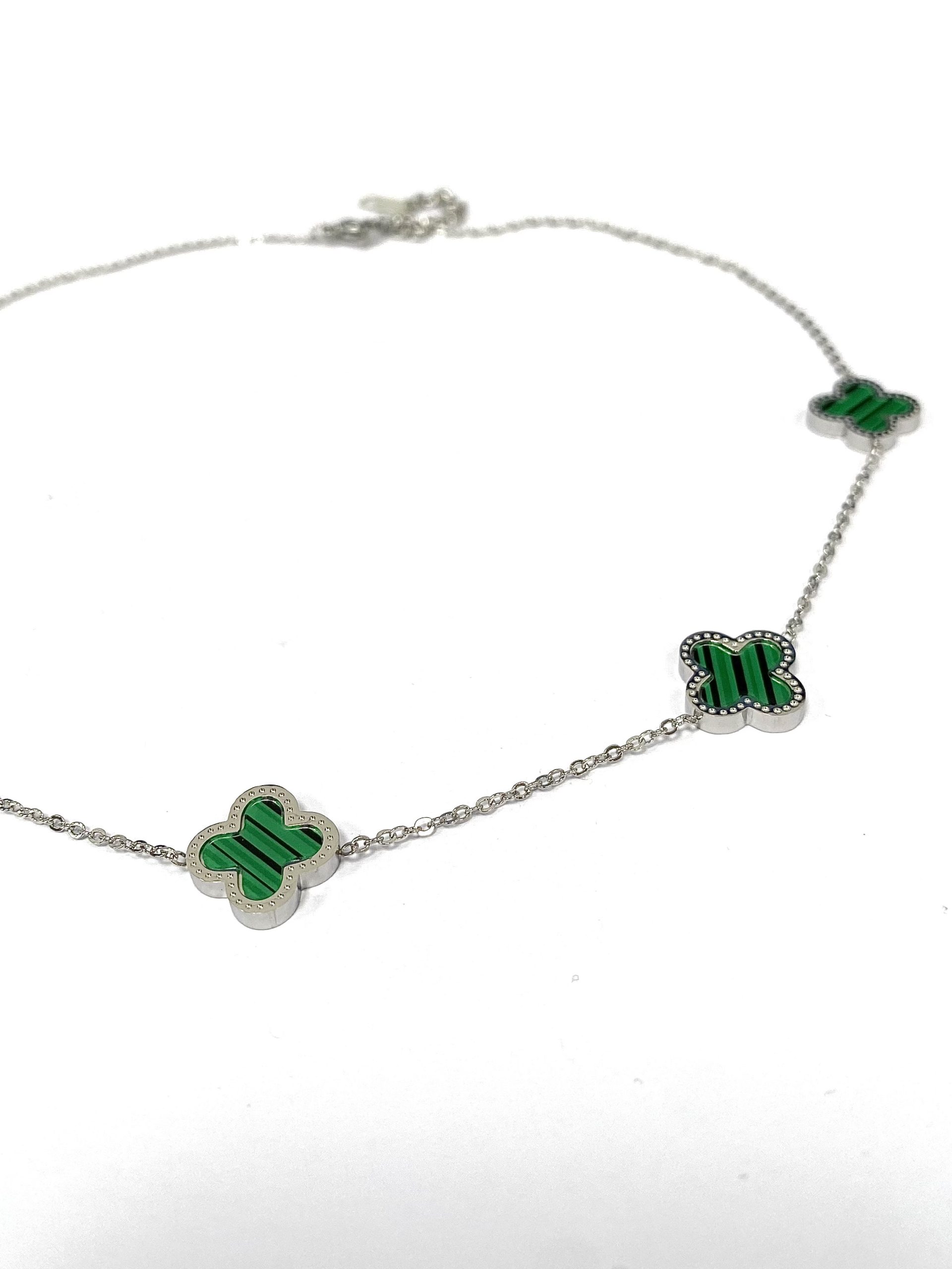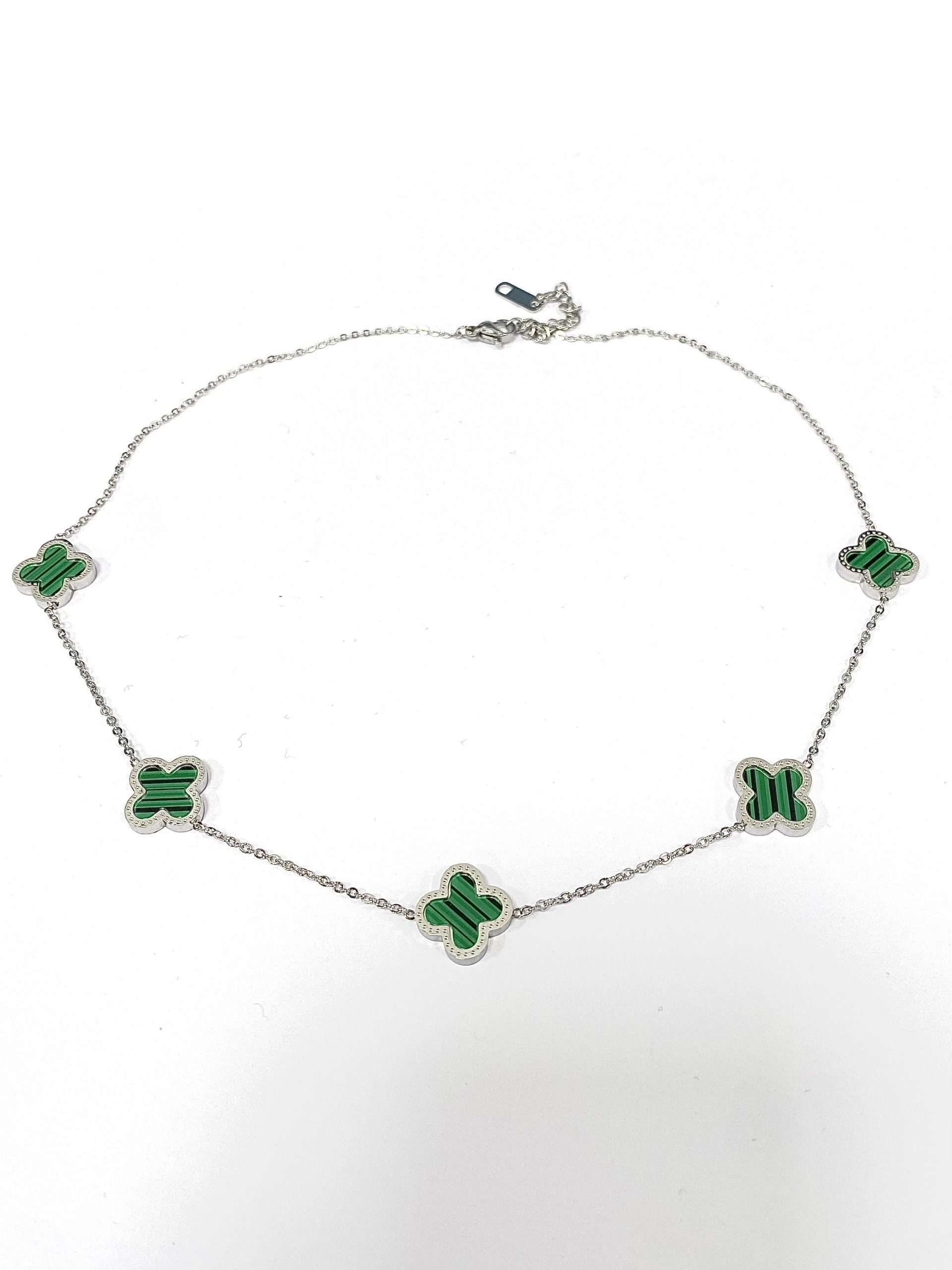Green /Silver 5 Clover Necklace 6395