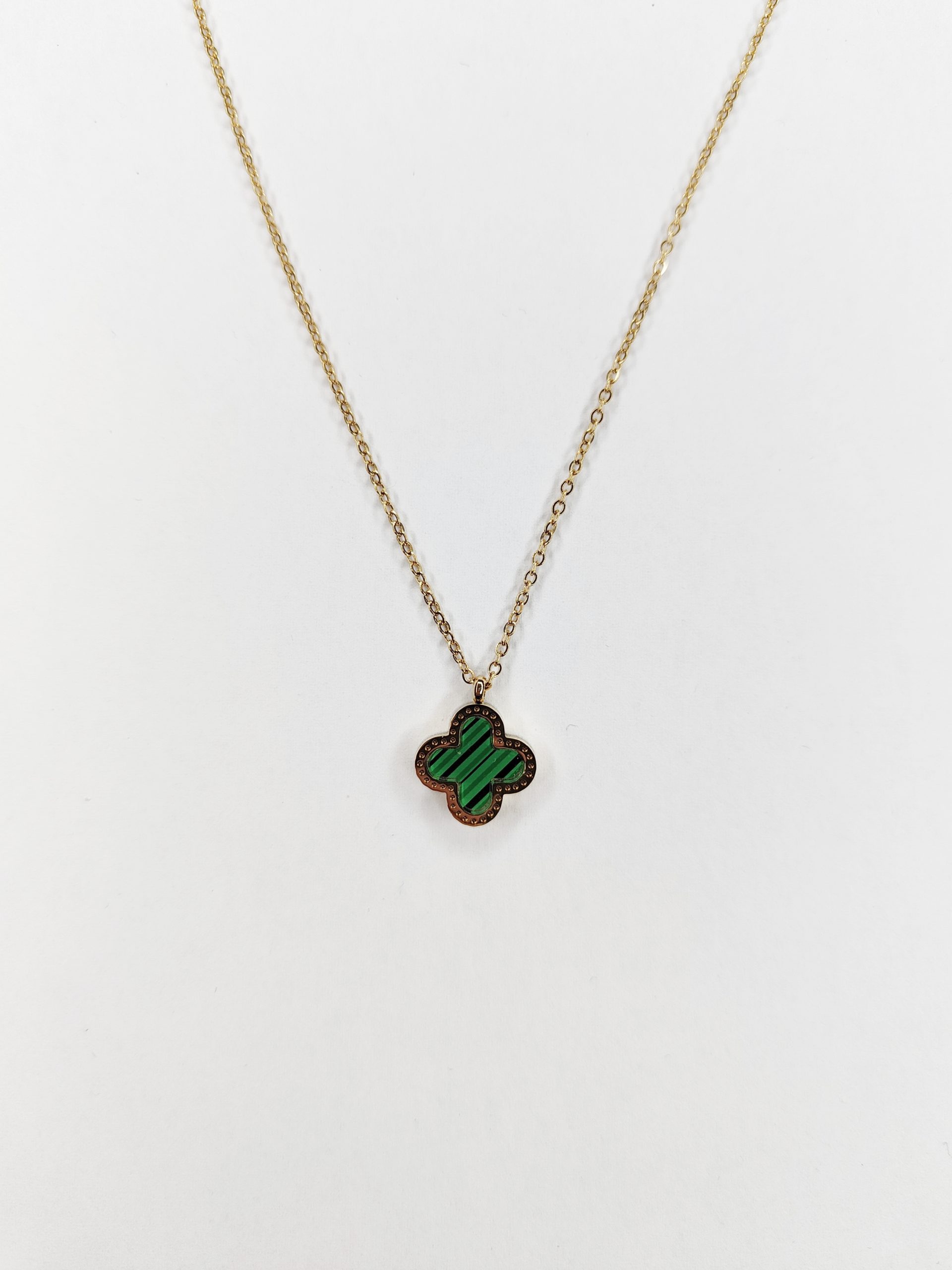 Reversible Clover Necklace Green/Pearl White 5182